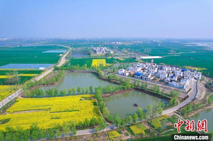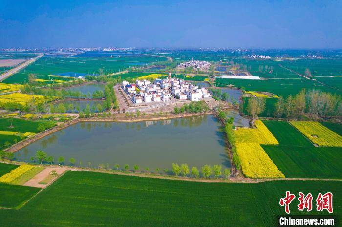 中新网阜阳4月7日电 (刘浩 张天峰)当前,正值油菜花盛开的时节,在安徽省阜阳市阜南县蒙洼蓄洪区内,油菜花竞相绽放。从空中俯瞰,金灿灿的油菜花、绿油油的麦田、纵横的乡道、美丽的庄台相映成趣,构成了一幅绚丽多彩的乡土画卷。