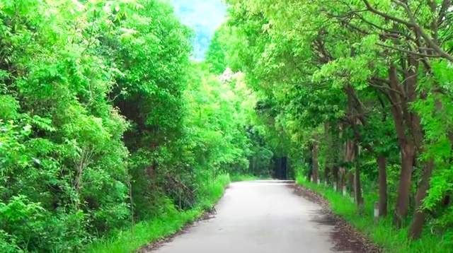 从进入太阳湖度假村开始,就能看到一条笔直的乡道。乡道的规模不大,里程有限,但沿途的基建很有意思,比如它的路基很高,两边都是巨大的行道树。行道树是清一色的槐树,枝繁叶茂,挂着小果子,撑出一块块厚重的影子。也有间隔的防撞水泥墩建在树下,每隔半米做一个区分,让哪怕是新手司机也能安然走过。曲折通幽的道路,向着北方蔓延,前面看得到零星的白云天空,还有半边建筑屋檐,似乎也有水面,似乎还有村庄,可一转身又不见了。