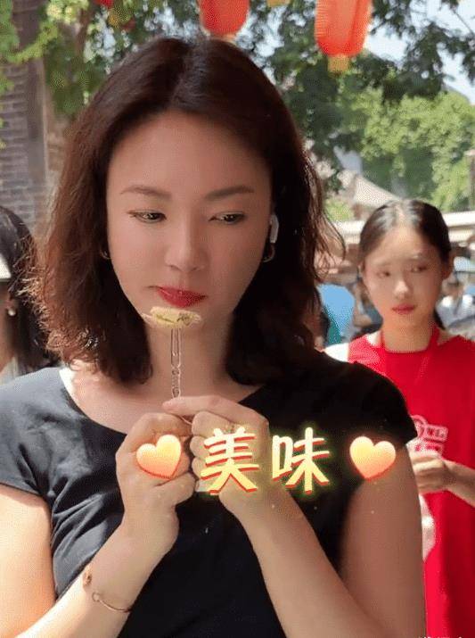 她又来到一个景点,吃了陕南的核桃饼,刘芳菲让镜头给了个特写,她说非常好吃!