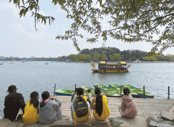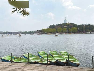 北海公园西码头,几名学生商量着是否租几条手划船。