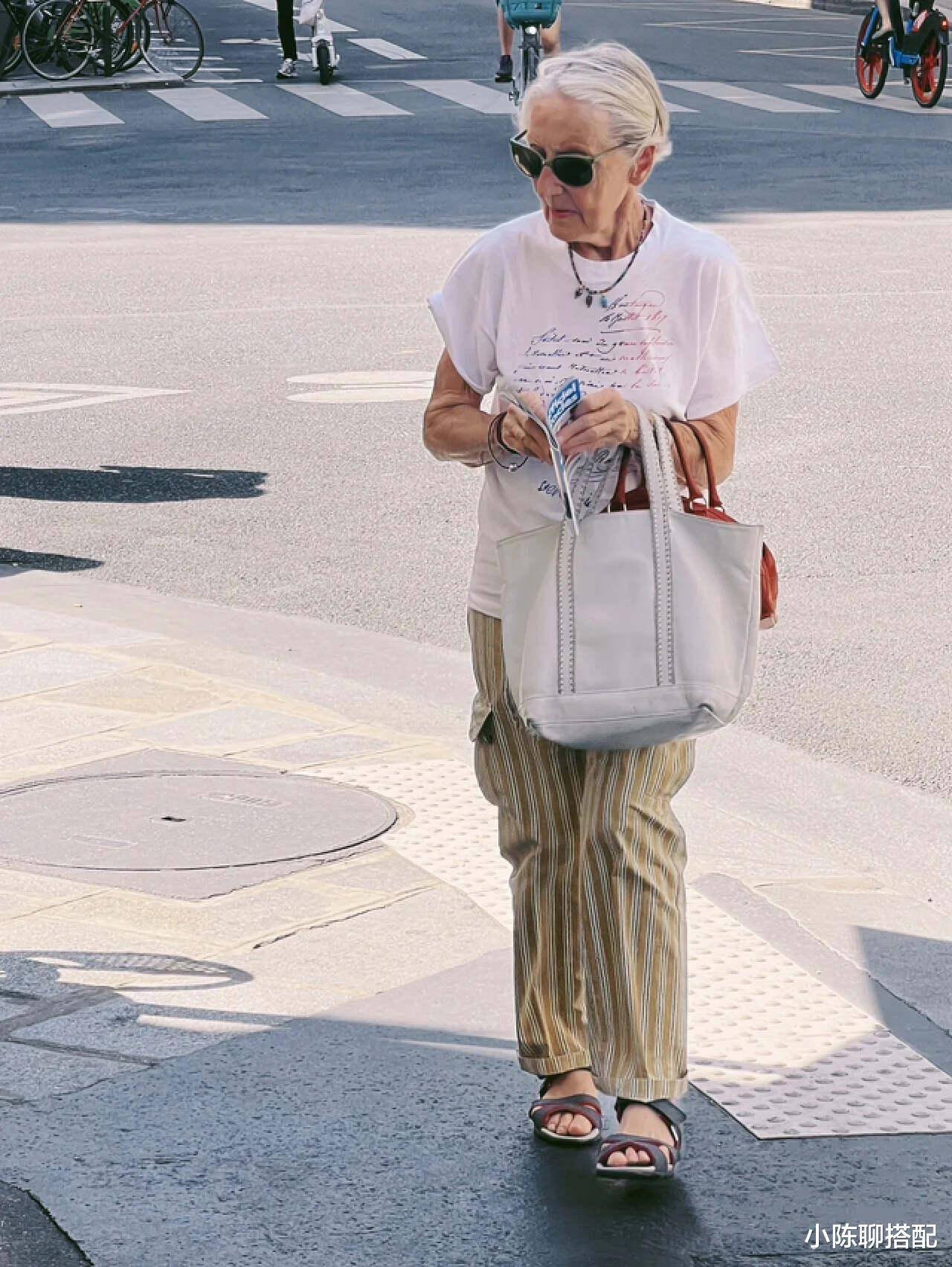巴黎老奶奶心里并不害怕衰老,因为她们不觉得需要穿衣服来减龄什么的,把最新最舒服的衣服穿在身上。