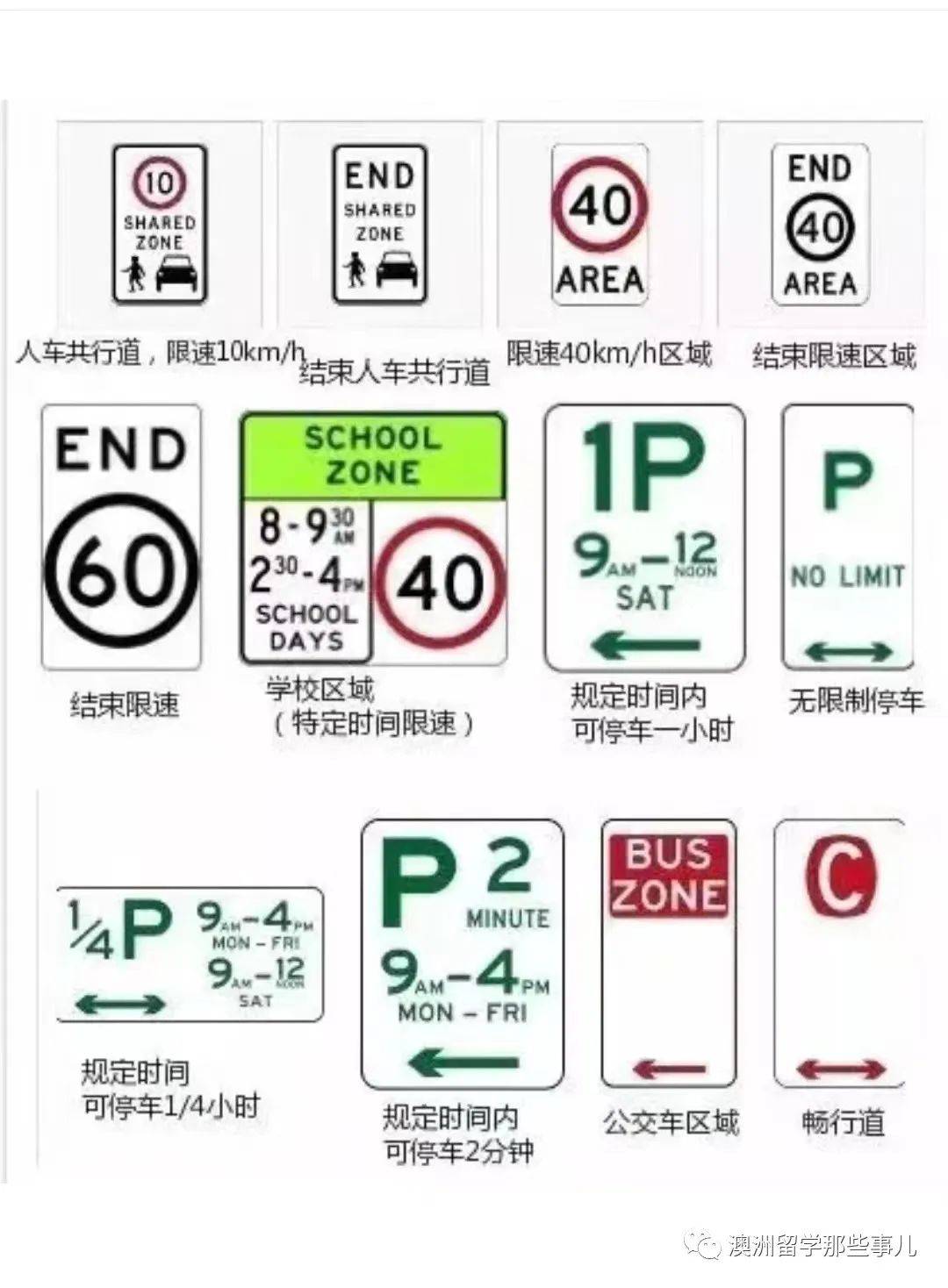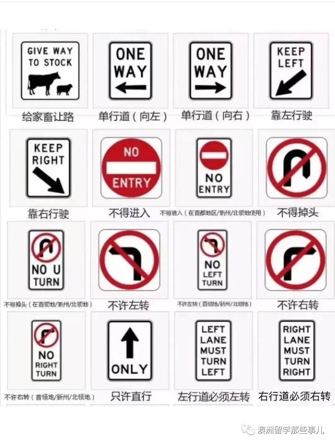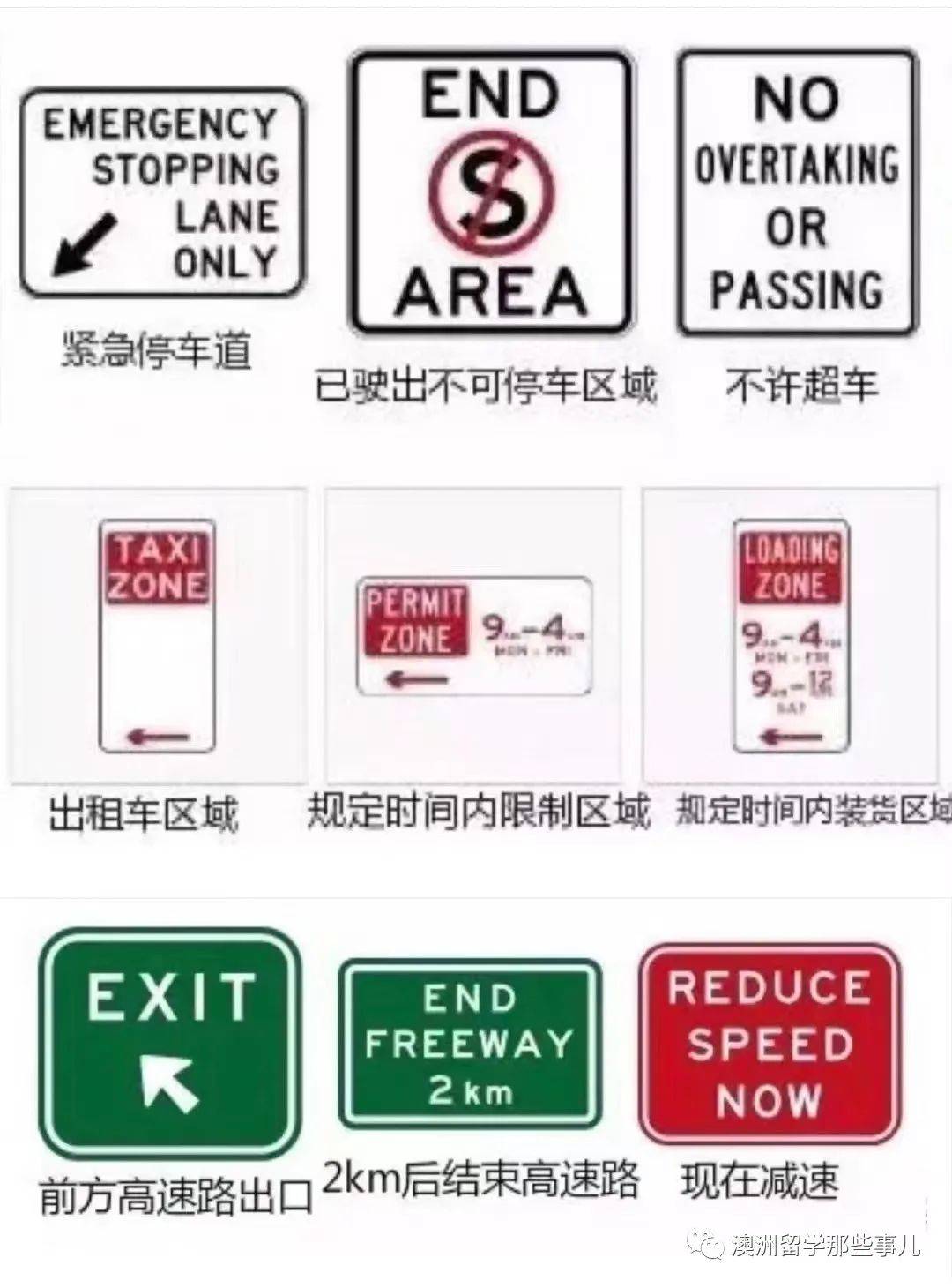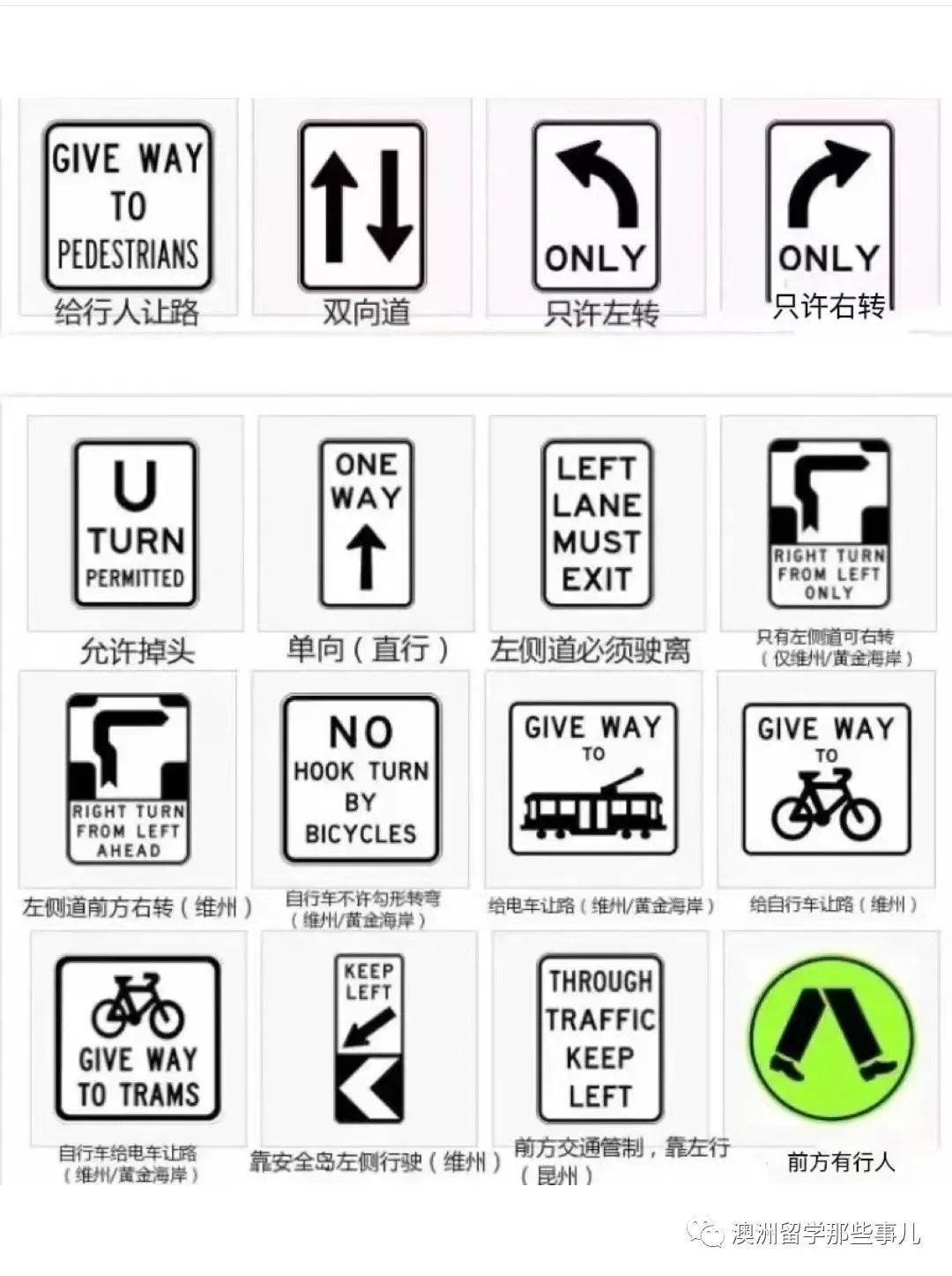 ✅澳洲还有很多五花八门的路标,不管是要考驾照,还是实际开车上路,都得懂得路标的含义哦!