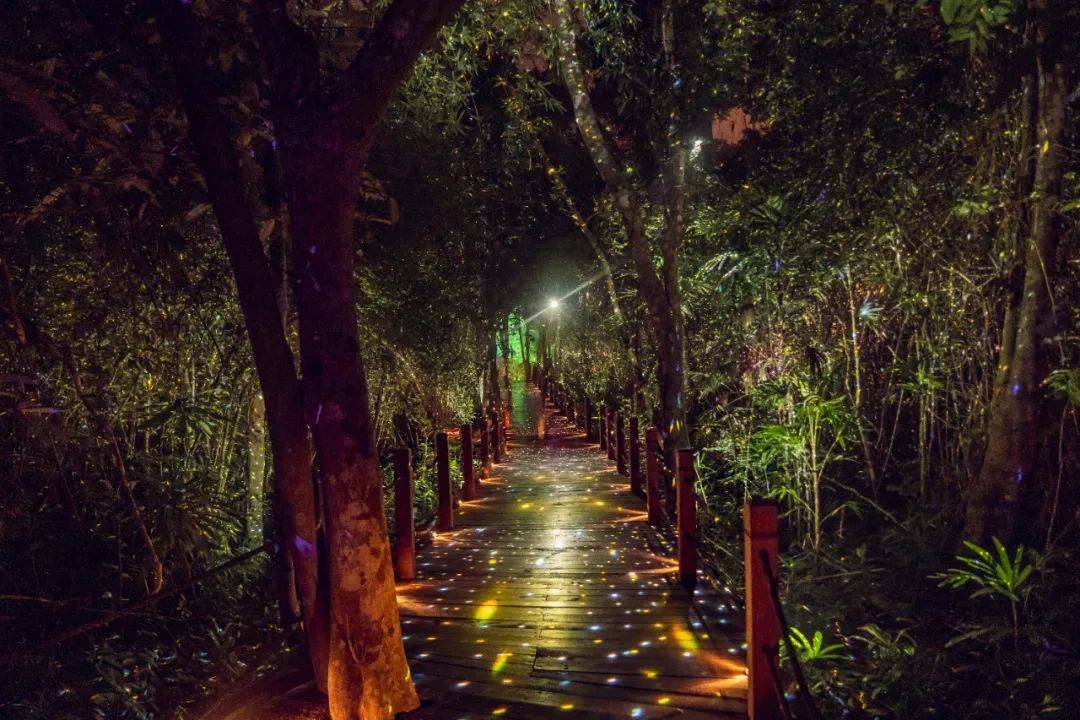 景区2021年倾情打造的三亚唯一大型森林实景沉浸式夜游项目“山海奇幻夜”。入夜后光影斑斓、萤火点点、花海处处、奇幻浪漫,被称为三亚夜景的天花板。