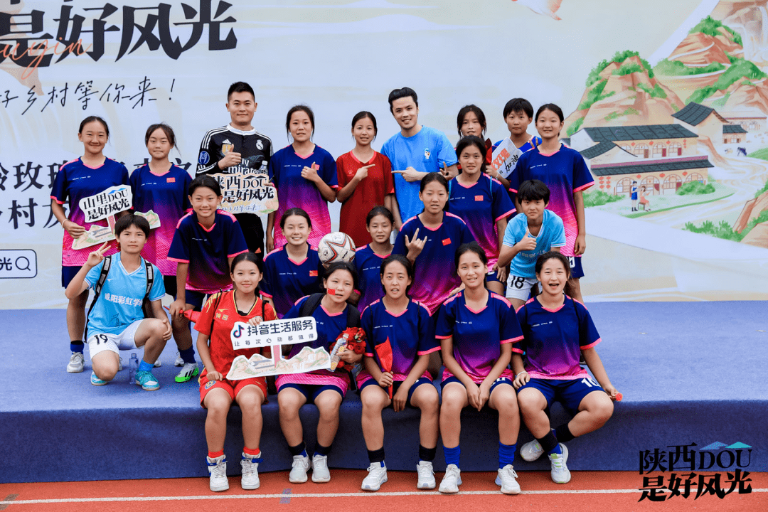 活动期间,项目组邀请了汉中和留坝两地的青少年女足球员们来到营盘村,开展了一场乡村友谊足球。@董老厮、@凡创足球 化身乡村好风光推荐官走进赛场进行实时解说。比赛还在抖音上进行了直播,吸引了17.6万名网友观看。