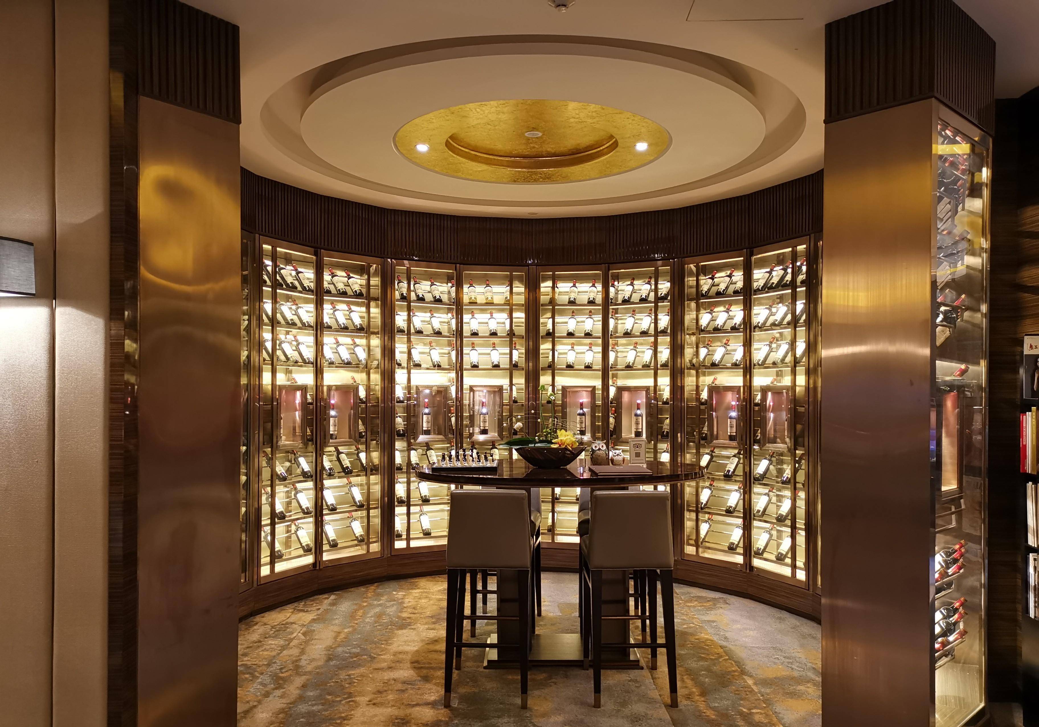 ▼当然,酒廊本身的装修也非常精美,配备了一个晶莹剔透的圆形玻璃柜式酒窖,令整个空间充满了法式气质。