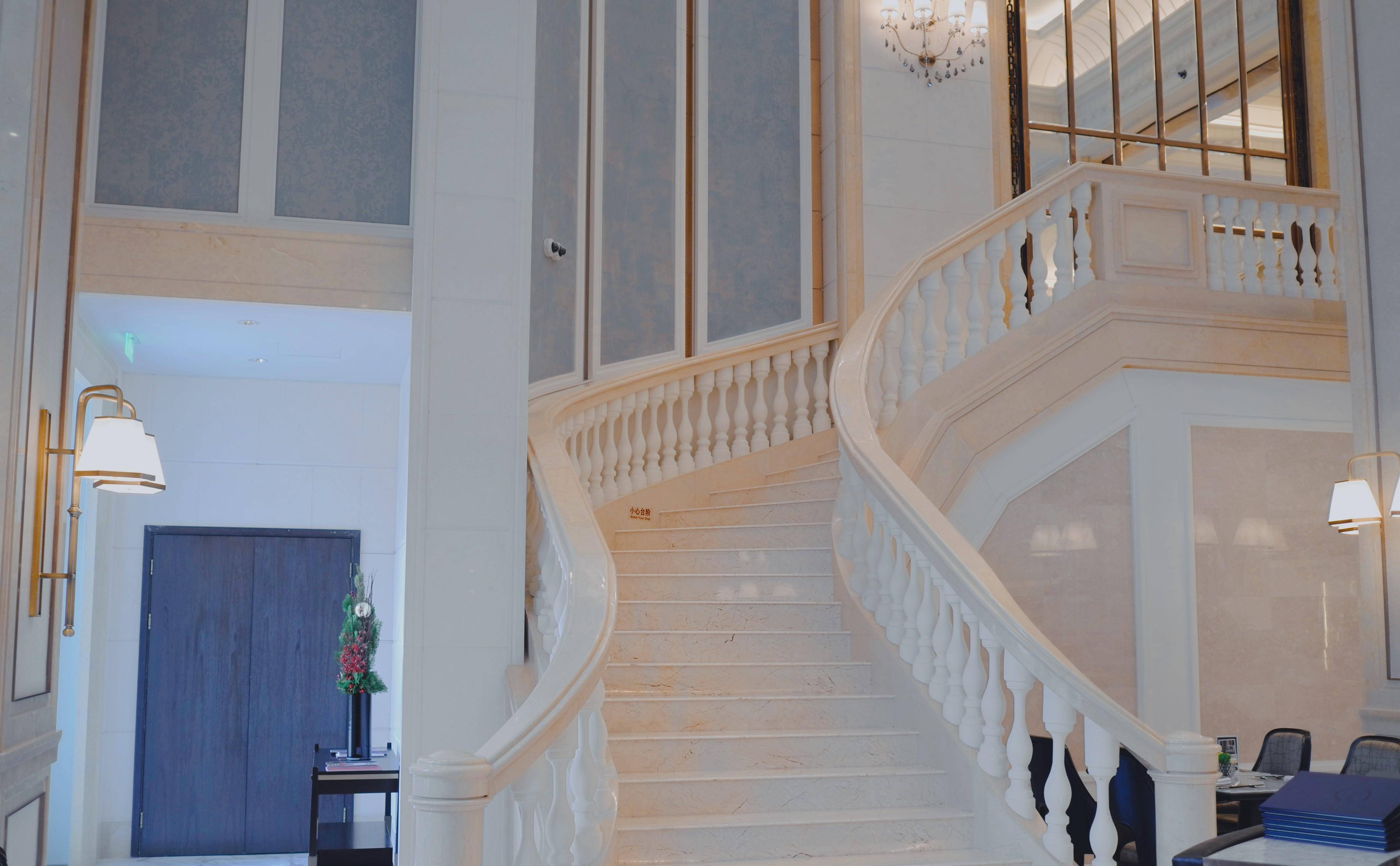 ▼酒店的全日餐厅就在大堂的楼下,气势非凡,亦是这家酒店在设计上的一大亮点,从左侧的旋梯下楼,分分钟感觉自己是在赶赴一场假面舞会!