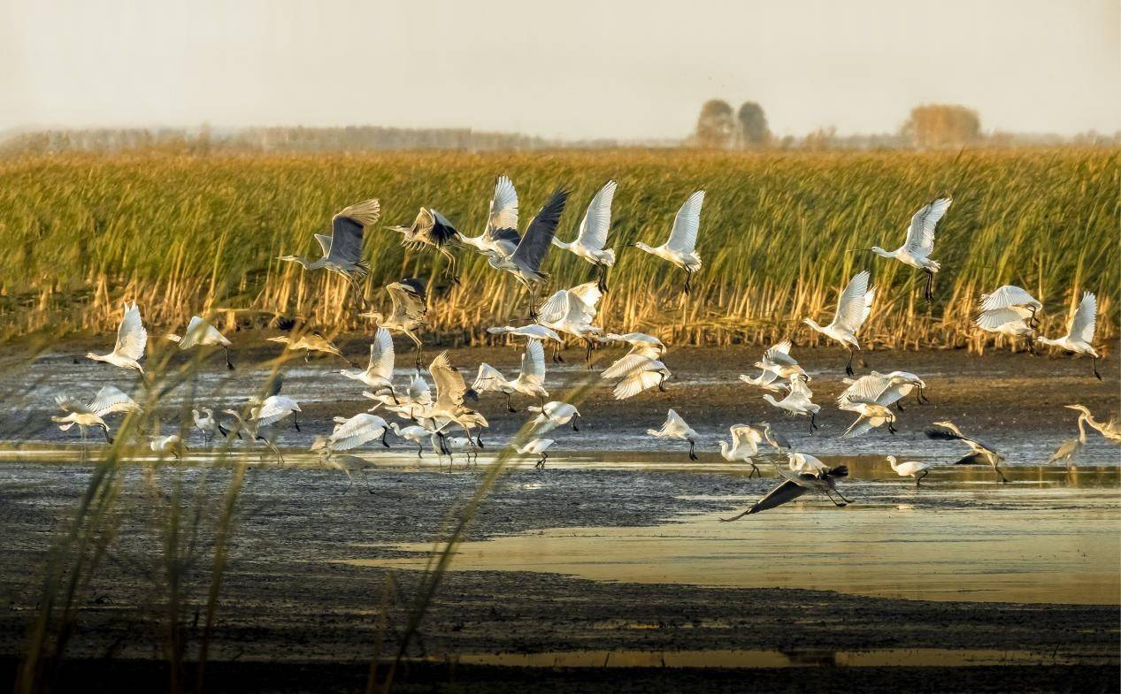 西洼荒自然保护区白鹭齐飞(央广网发 望奎宣传部供图)