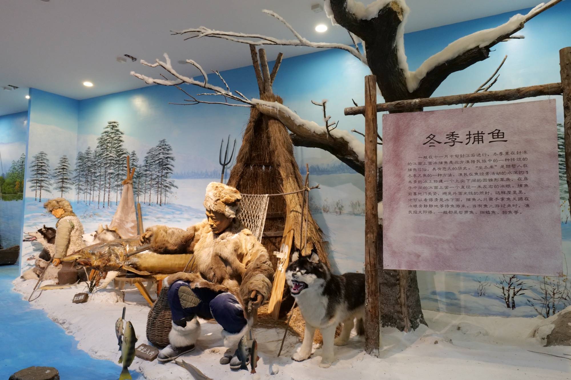赫哲民俗渔猎文化馆中的冬季捕鱼部分(央广网发 邵丽君 摄)