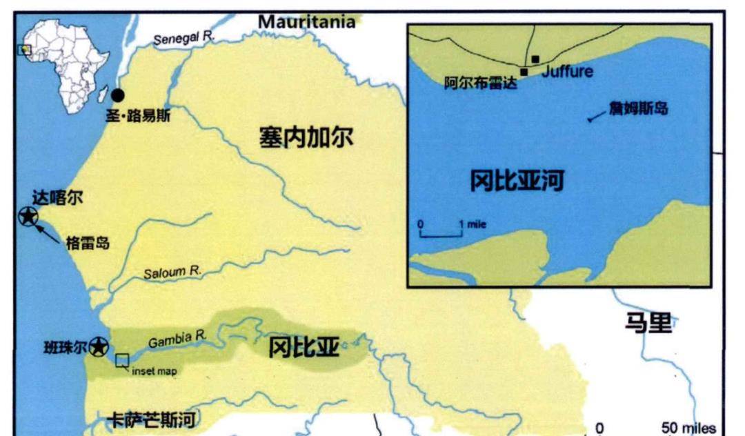 这一河道完全位于冈比亚境内,冈比亚是一个国土狭长的国家,东西长约350公里,南北最宽处不超过50公里。从地图上看,冈比亚的国土就像一个香肠,三面被塞内加尔国土包围。冈比亚这种国土分布,主要拜英国人所赐,当年英国殖民者占据这块土地,主要就是看中了冈比亚河的航运价值,英国船舶可以沿河而上,把影响力深入非洲腹地。法国占据塞内加尔时期,多次试图占据冈比亚,想把塞内加尔的版图变得更完整,但都被英国打败,最终殖民时代结束后,塞内加尔和冈比亚分别独立,成为了两个独立的国家。
