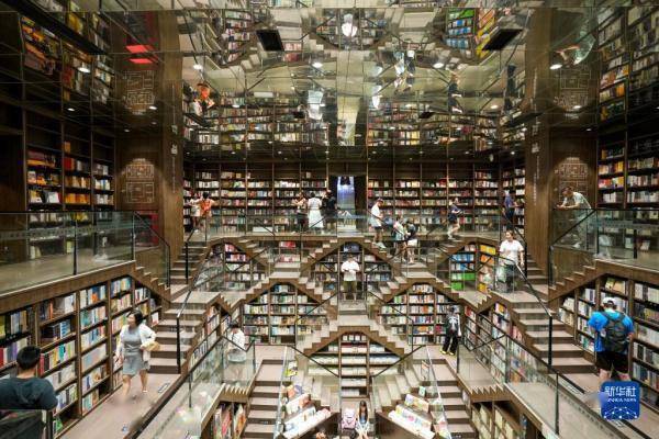 8月2日,读者在重庆九龙坡区的钟书阁书店避暑纳凉,选购图书。