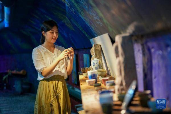 8月2日,一名女孩在重庆市九龙坡区黄桷坪街道的石头房子艺术空间欣赏各色手工艺术品。