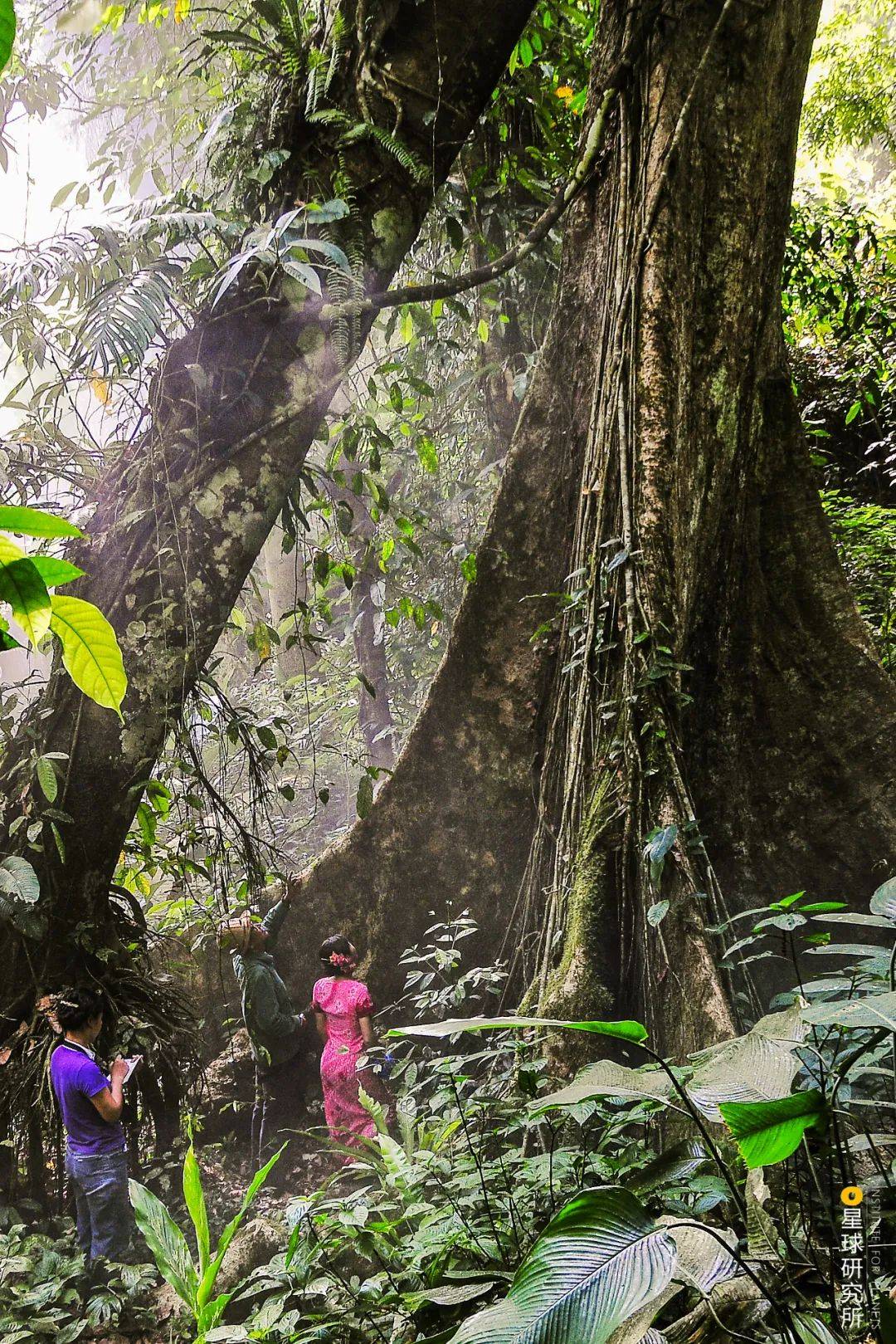 除了望天树之外,雨林中还有四数木等30多米的“大高个”。为了支撑起巨大的树躯,它们中的一部分在底部延伸出板墙状的结构,这就是板根。