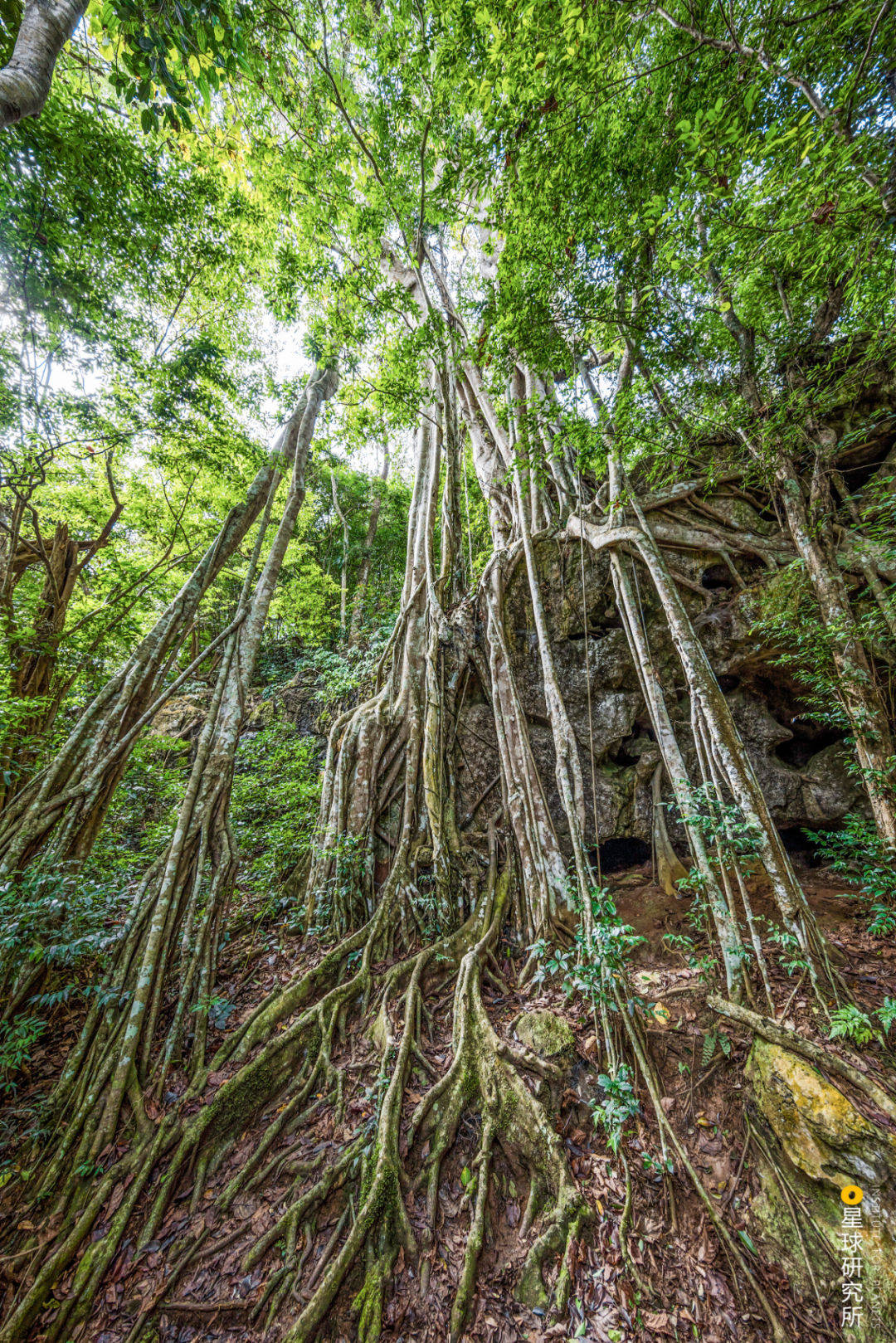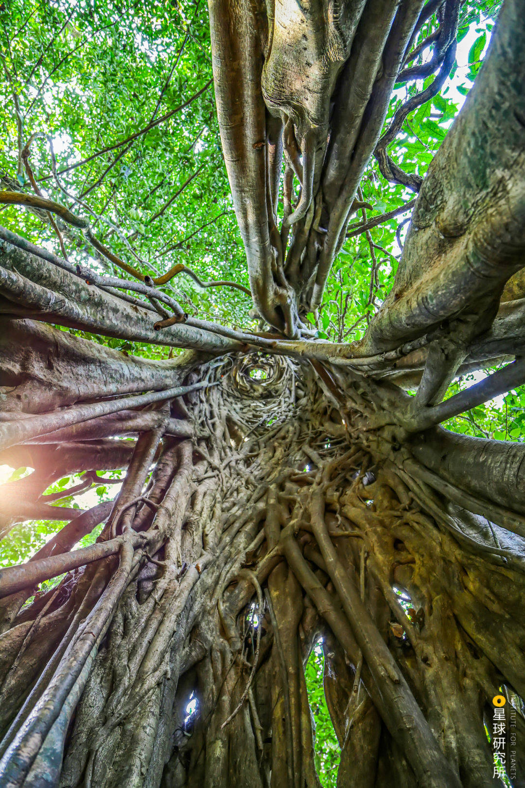 图中榕属植物所缠绕的寄主早已腐烂并消失,但从榕属植物的中空部分仍能窥见寄主曾经的模样 | 摄影师@李贞泰