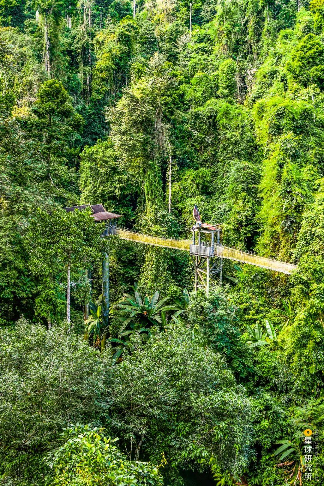 在补蚌的望天树景区,人们在望天树(Parashorea chinensis)上架起了空中走廊 | 摄影师@查巍