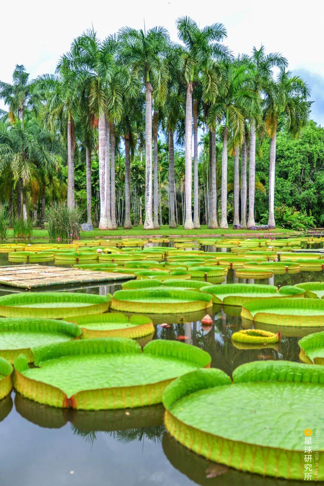 中科院西双版纳热带植物园是世界上户外保存植物和向公众展示植物种类最多的一个植物园,它收集了超过12000种活植物,既是中科院的科研单位,又是国家5A级风景名胜区。图中是园内的王莲和棕榈景观 | 摄影师@万霜降