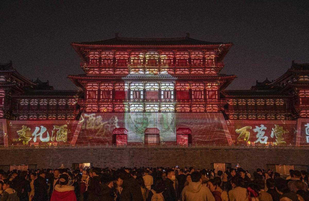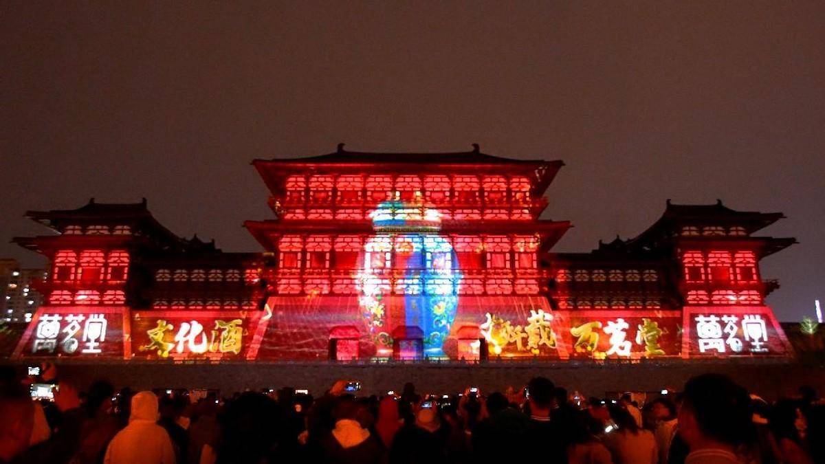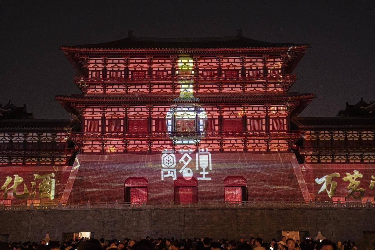 古城流光溢彩,人群摩肩擦踵,应天门建筑+激光投影+立体声+灯光,不断变幻的光影秀让大家对白酒有了不一样的感受。“文化酒·万茗堂”点亮了洛阳最美夜空,打造了一场光影盛宴,这种展示不仅传达了“文化酒·万茗堂”的品牌调性、风格,更是一种融合了科技、艺术和文化的表演。 “文承千载、酒藏万象”“文化酒·万茗堂”主题灯光秀,一场艺术与科技的碰撞,一场创意与美学的表达,让传统文化焕发新的光彩。