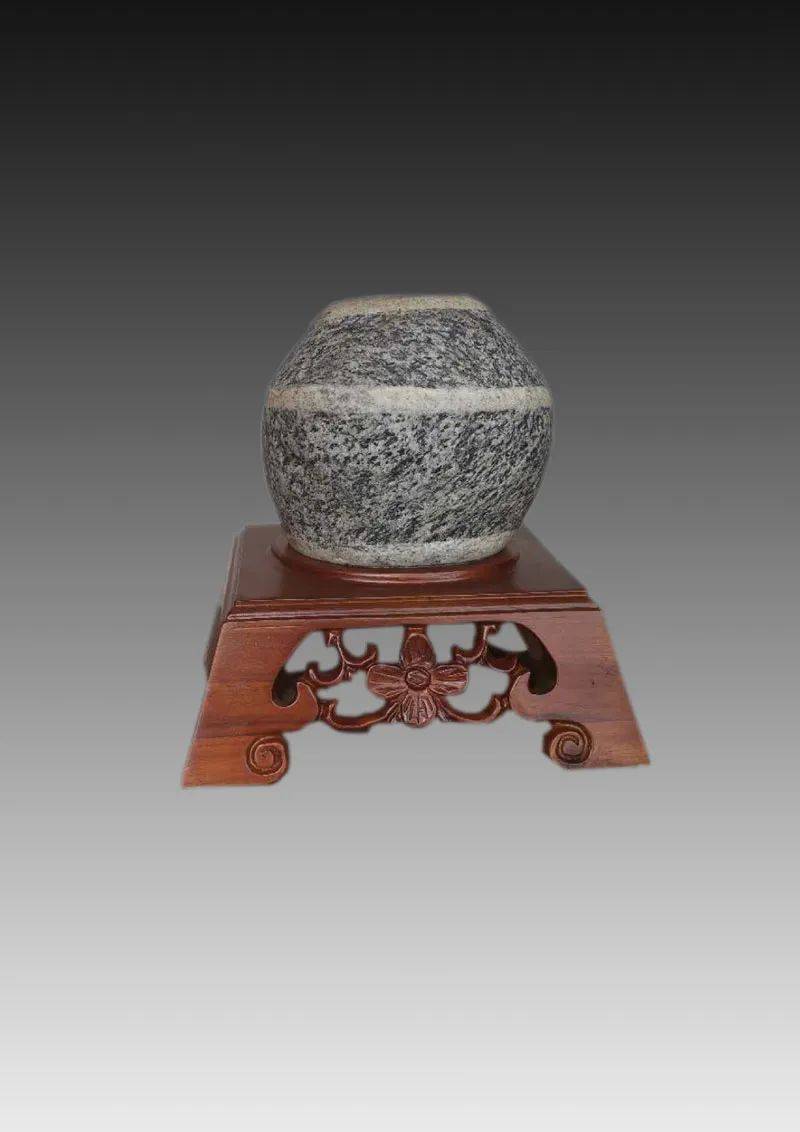 此方奇石“雅江罐”,石质坚硬,表面光滑,纹理清晰,将西藏奇石奇、特、怪、妙的特点发挥的淋漓尽致。罐状的石体,形态优雅,完好无伤,造型生动,富有神韵,颇具隐匿、含蓄之美,配以雕花的古架,更显尊贵和不凡,给人以无穷的艺术享受。