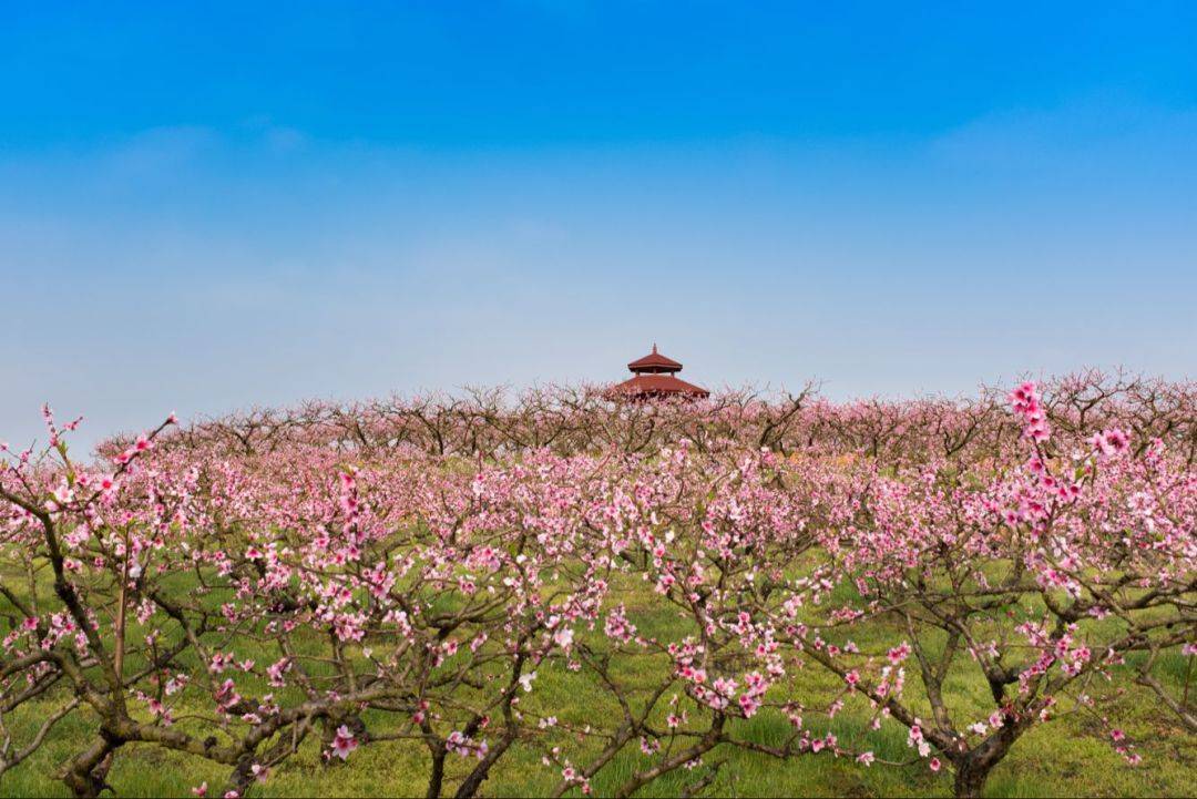 ▲龙溪镇桃花山的桃花从这头无边无际地蔓延到远处。桃花吐蕊,犹如粉红色的地毯铺张在大地上。