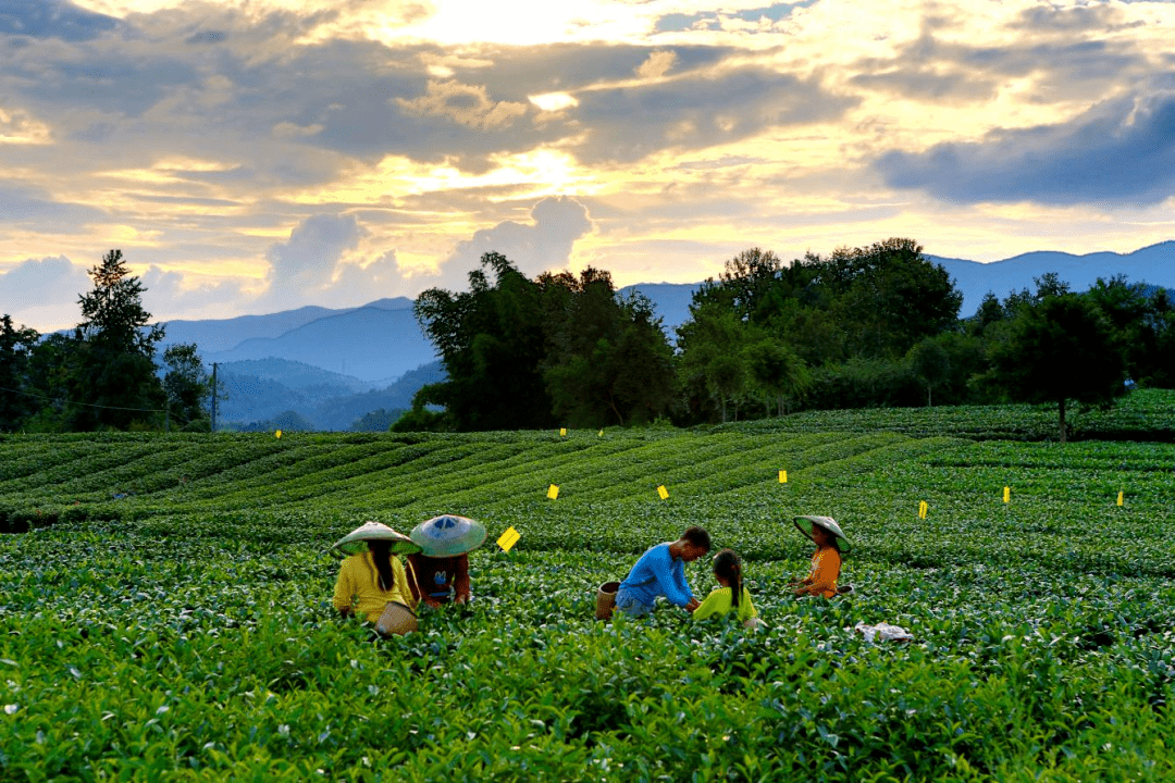 ▲徒步茶园,走上拉膜平台,眺望远山茶园,体验民俗,享受美食,让身心沉浸在天然美景之中。