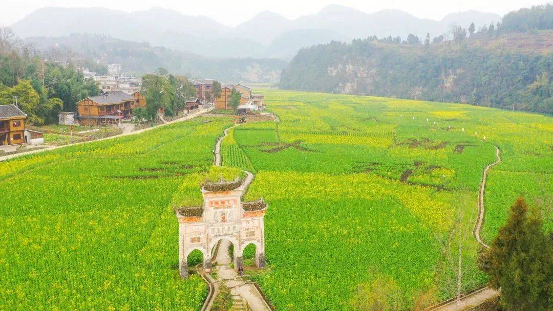 ▲长碛古寨现已开满油菜花海,这是春天赠予寨子的春日限定美景,整片田园约占8000亩。
