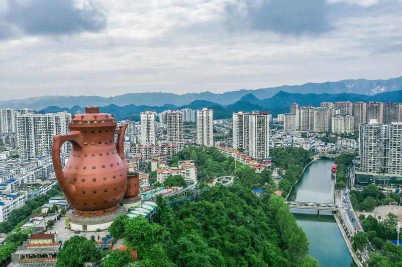 ▲天下第一壶,在“中国名茶之乡”遵义湄潭,它高73.8米,最大直径24米,2006年被基尼斯授予“最大茶壶实物造型”。