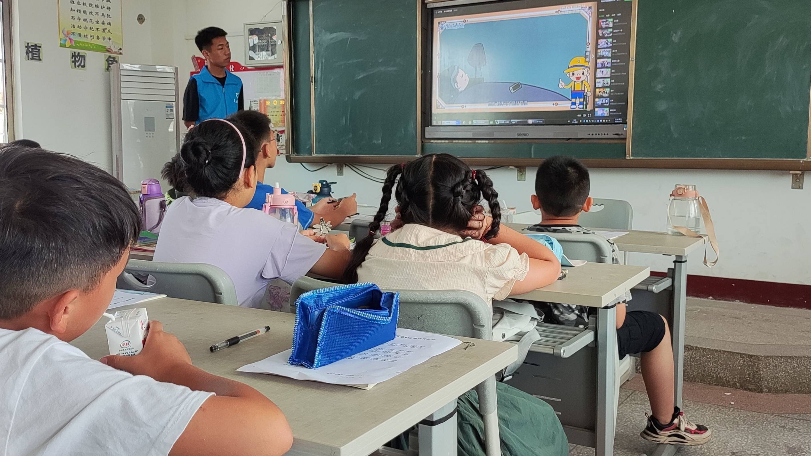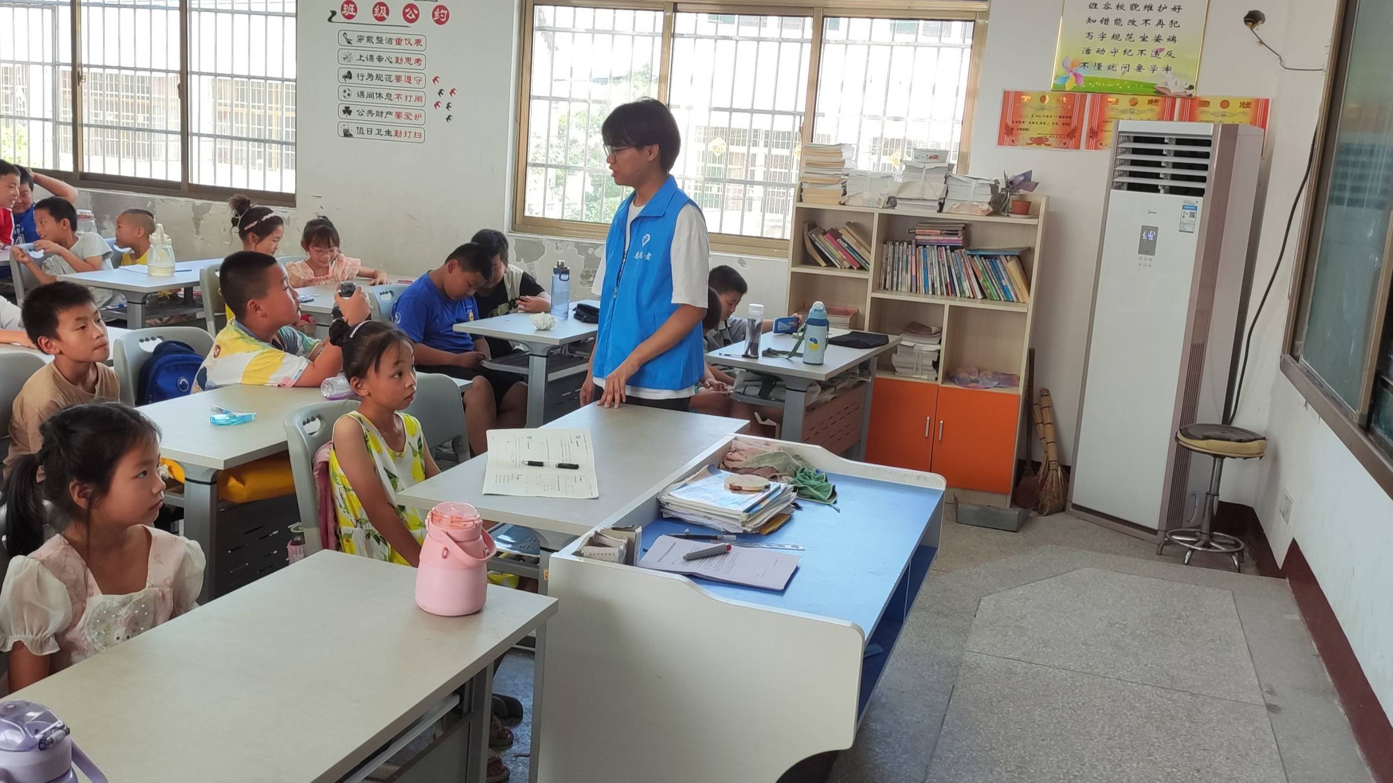 图为团队志愿者给孩子们强调防溺水安全,希望同学们能牢记心中。通讯员 罗希 摄