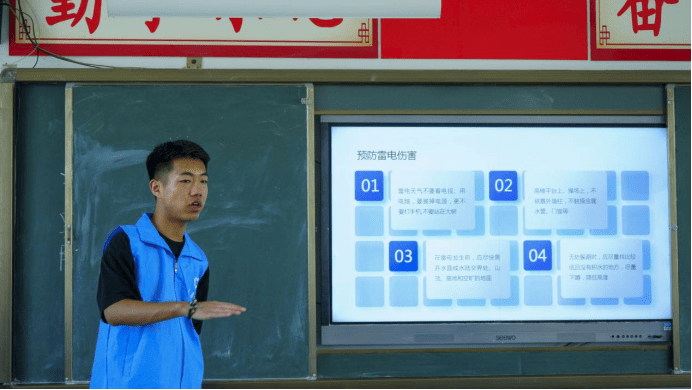 图为团队志愿者老师给孩子们讲解如何预防雷电伤害。通讯员 罗希 摄