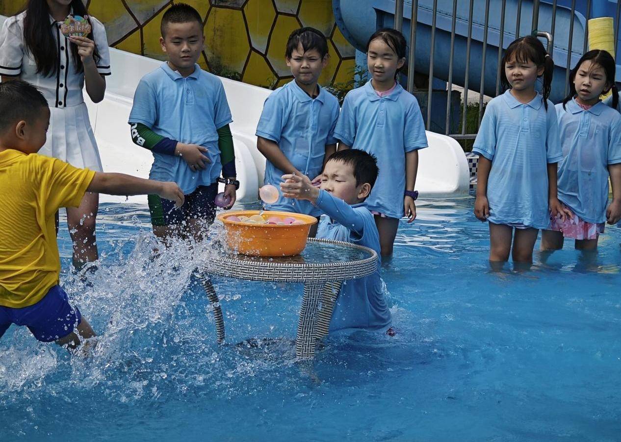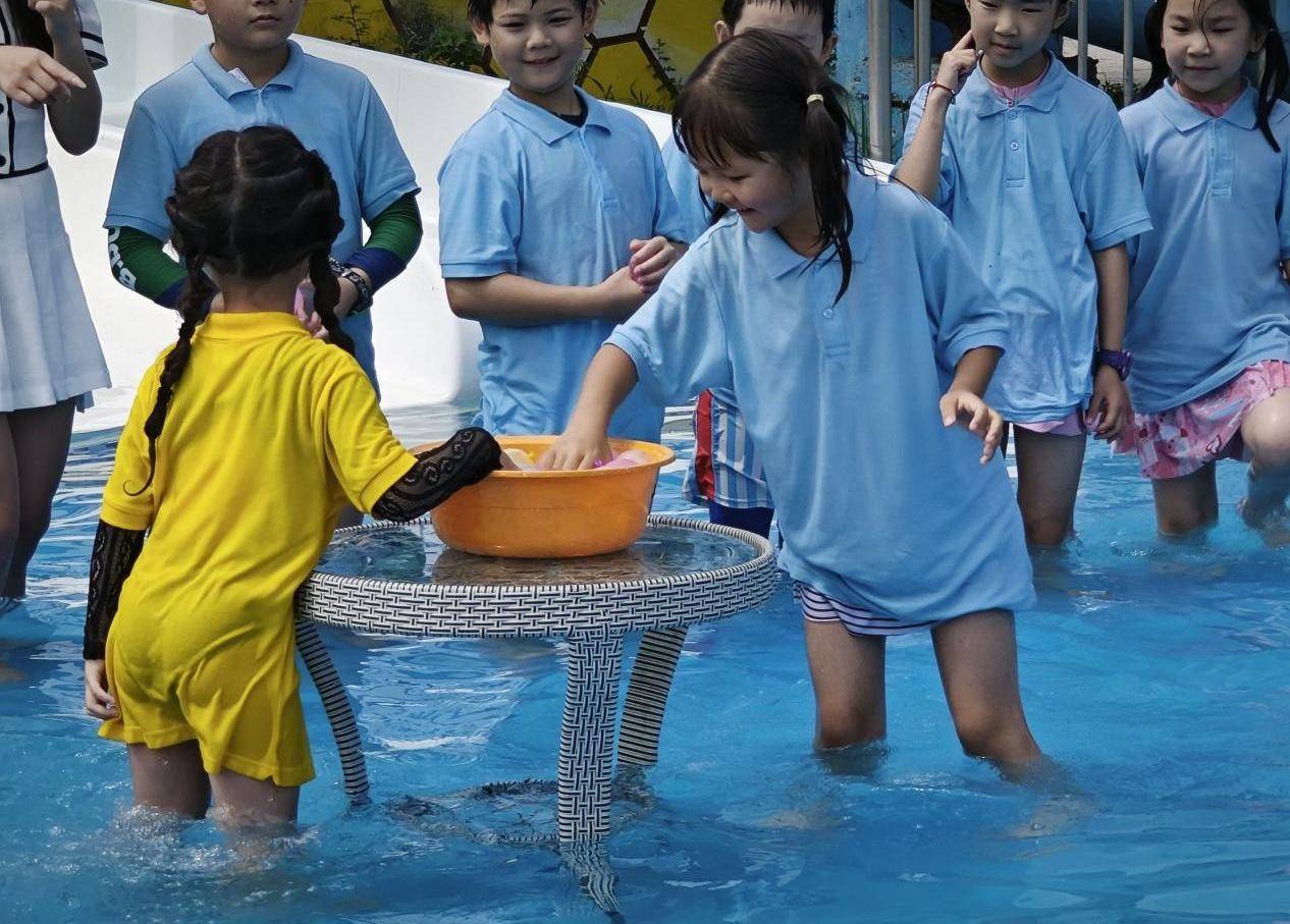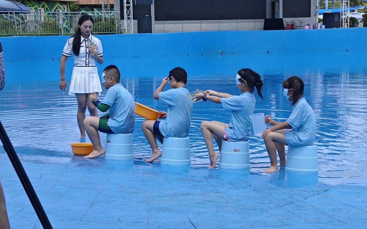 本轮环节,小队员们在水中展开了一场一二三木头人大战,从小队员尽力控制自己的样子中能够看出小朋友们对胜利的渴望。那就和小编一起为他们加油呐喊吧!