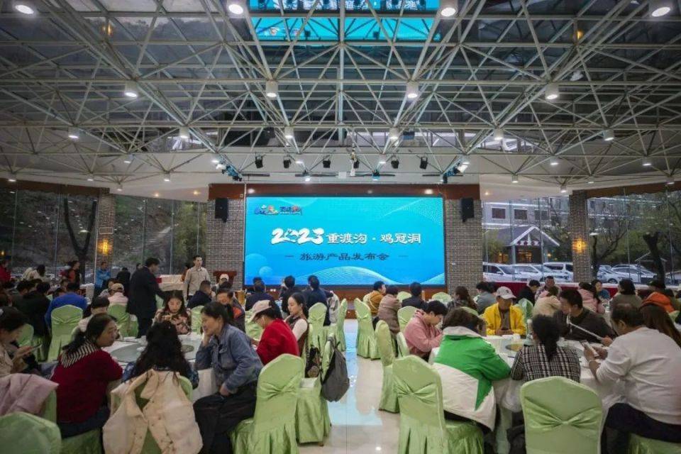 发布会现场,两大景区的金牌推介官全方位向参会来宾展示了重渡沟、鸡冠洞景区秀丽的自然风光、风土人情,赢得了与会来宾的阵阵掌声,取得了丰硕的成果。