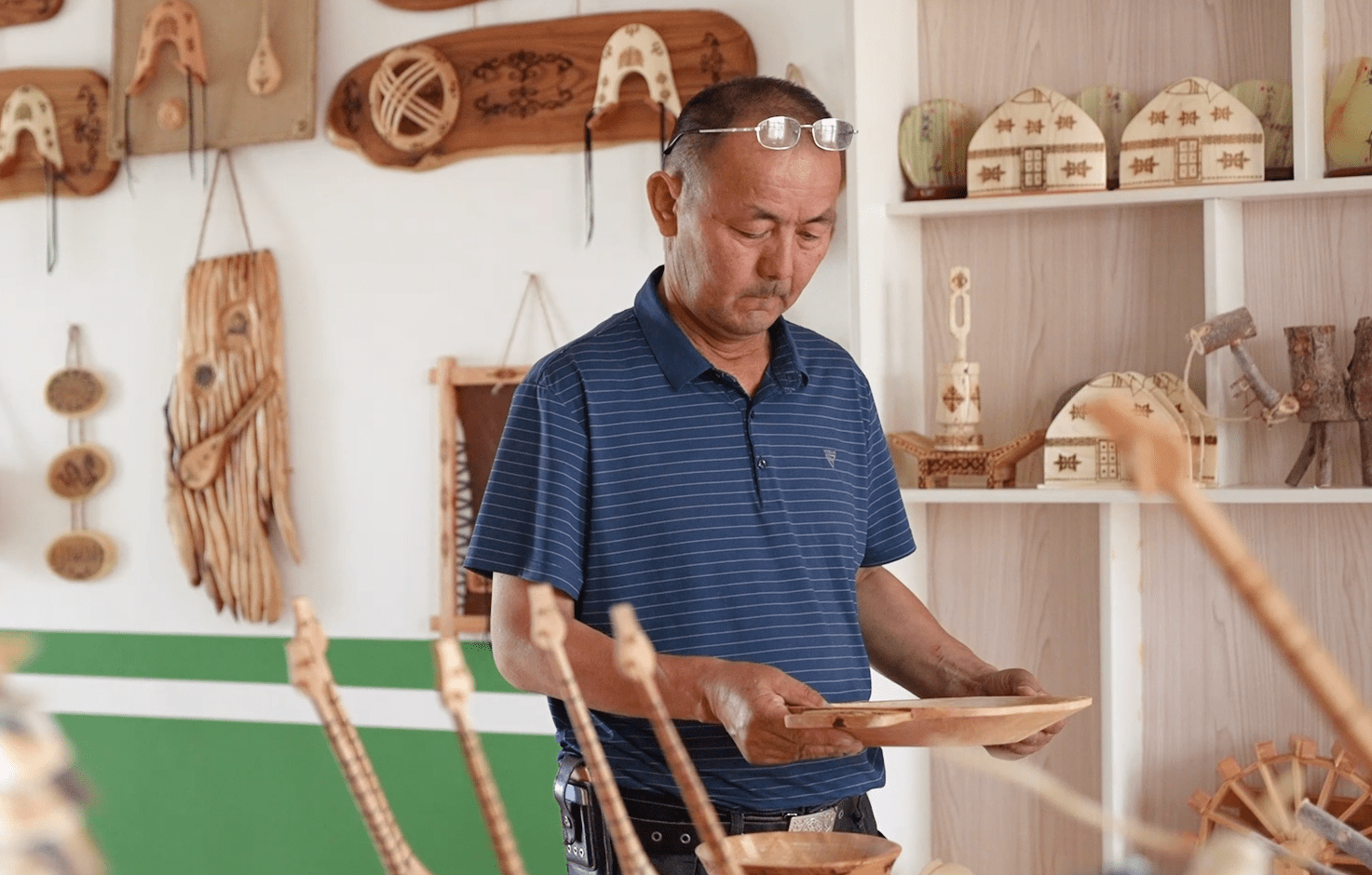吉木乃县托斯特乡党委、政府在了解情况后,也为此抛出了扶持政策,专门为他引进雕刻机以及提供了合适的场地,使他能更好地把传统民族手工与现代工艺相结合,让传统技艺“枯木逢春”,从而带动周边群众就业增收。