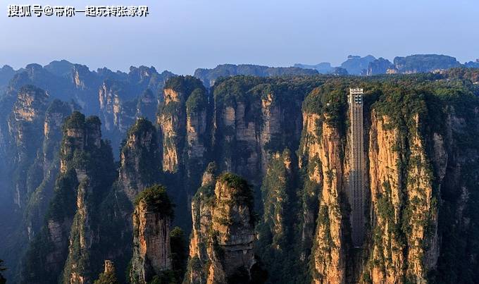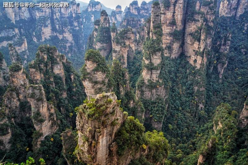 袁家界位于杉刀沟北麓,地处张家界世界自然遗产的核心,海拔1000余米,四周陡壁悬崖,矗立在武陵山区之中,恰似乎地突起高台