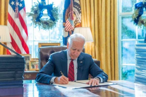 拜登签署《2023财政年度综合拨款法案》,也让联邦政府对TikTok的禁令正式生效。(图自拜登推特)