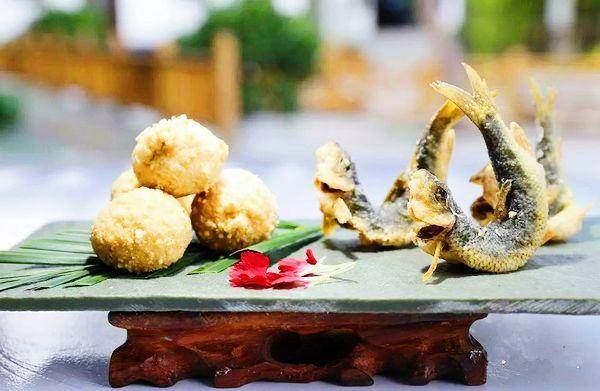 在山东,干炸赤鳞鱼是一道传统鲁菜,将鱼炸至颜色淡黄、鱼身呈弓形,再撒上一把“灵魂”花椒盐,一道干炸赤鳞鱼就成了。
