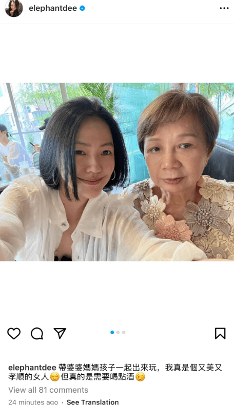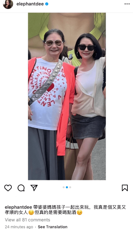 当然了出国旅行少不了摆拍,然而小S晒出的美照中却没有老公许雅钧,她晒出旅行照的同时还配文:带婆婆妈妈孩子一起出来玩,我真是个又美又孝顺的女人,但是需要喝点儿酒;然而却一个字也没有提老公,不知道是何意?