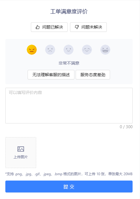 工单的意义在于高效率地解决问题,因此在工单结果环节,美洽支持用户为工单完成的效果进行满意度评价。