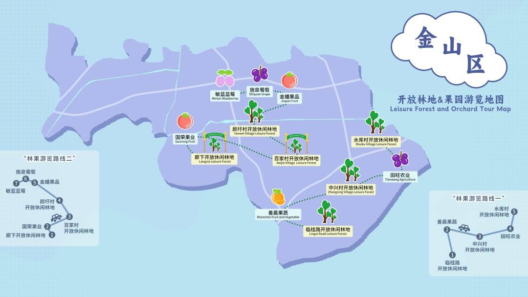 上海市绿化市容局介绍,今年的“乡土有约”活动,为大家贴心发布22条郊区“林果游览路线”。跟随这份林果地图,市民可以前往郊区“安全优质信得过果园”和开放休闲林地,或自驾或骑行,采鲜果观蝶舞,沐清风听鸟鸣,漫步于林下,畅想在田间,享受一场充实、生态、健康的自由之旅。