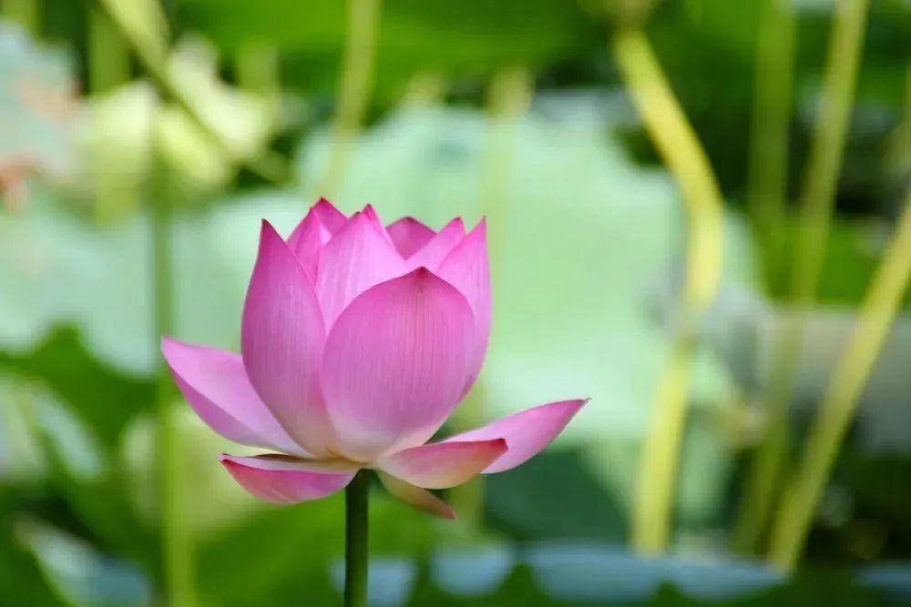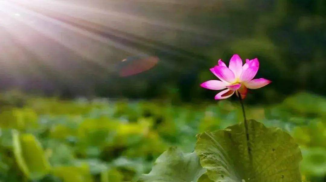 荷塘翠绿,花朵摇曳风中,犹如一位美丽的姑娘身着华服,驱散了沉积已久的暑气和浮躁。