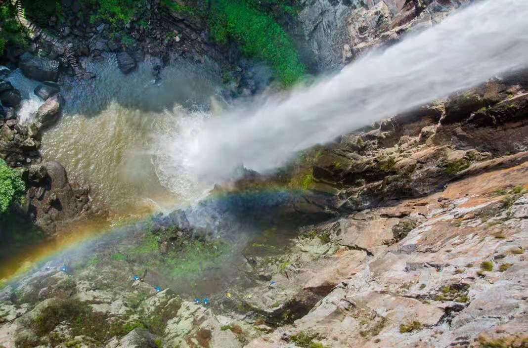 在徐凫岩的瀑布峡谷下,无需遮阳伞,可以看到阳光穿过树叶落下斑驳光影,绘就一幅充满写意的夏日画卷,还有瀑布传来的阵阵轰隆声,在瀑布边上那个只要一出阳光便有的永恒彩虹真的太好看了!
