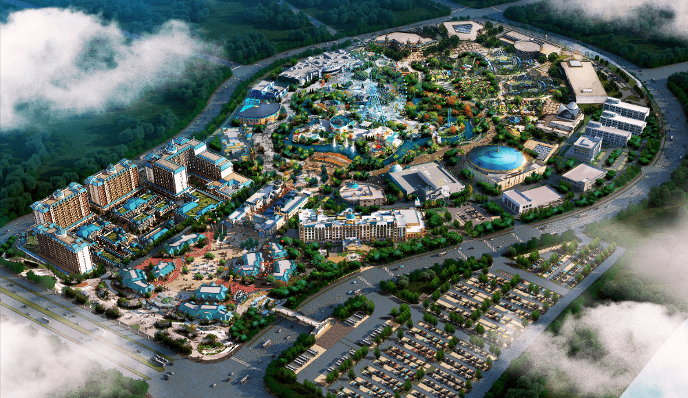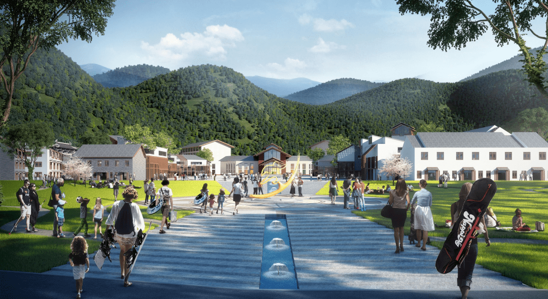 冰雪世界度假区规划占地面积701亩,建筑面积约70万㎡,涵盖游客服务中心、商业街区、星级度假酒店、滑雪度假公寓、健身中心、体能中心等。