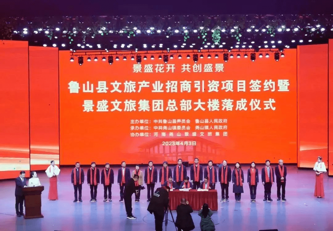 4月3日,鲁山县文旅产业招商引资项目签约暨景盛文旅总部大楼落成仪式举行。