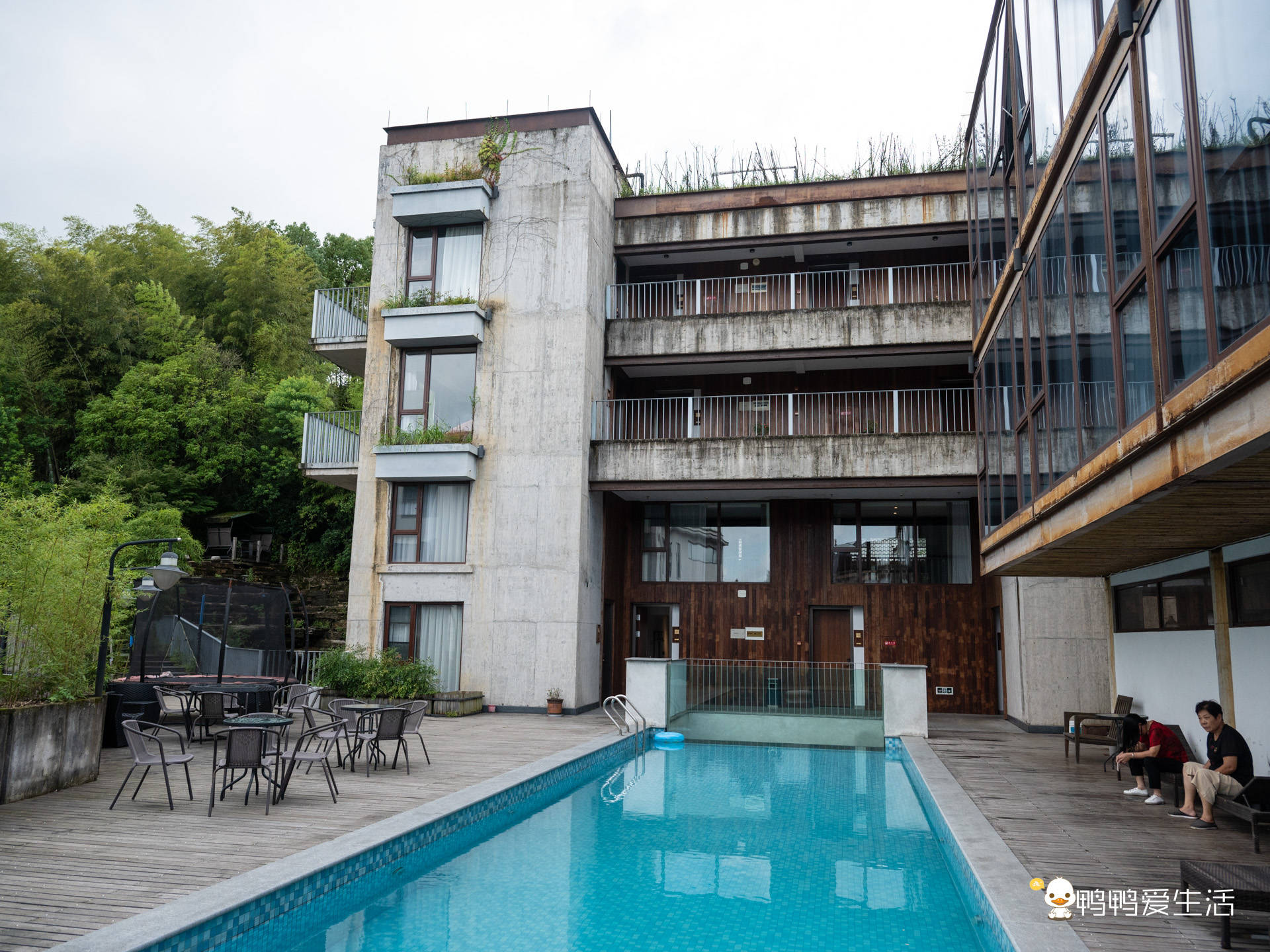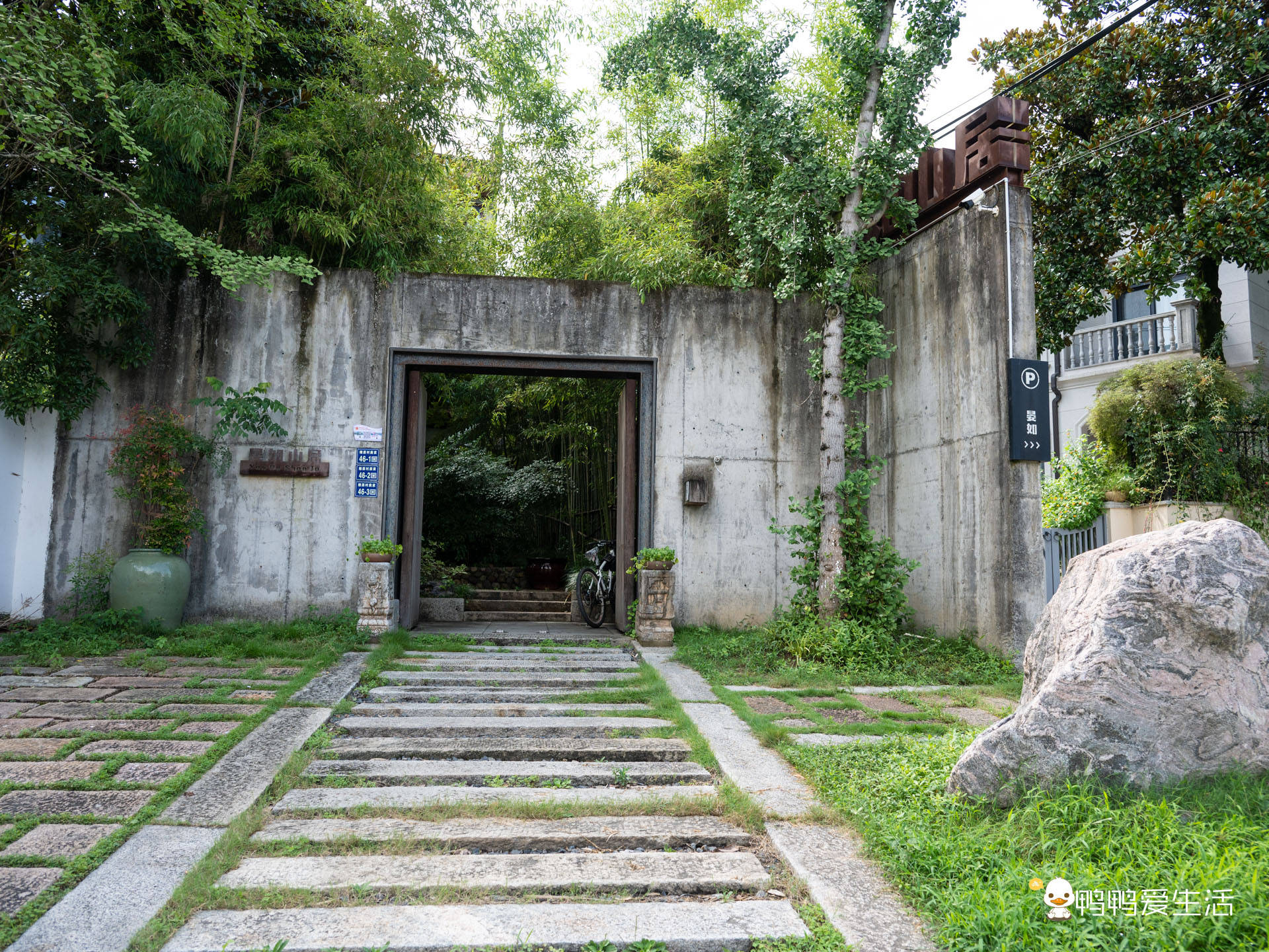 我们这回住的是晏如山居,有露天游泳池、小公园,拍照美美哒,步行200米便可抵达庾村广场。
