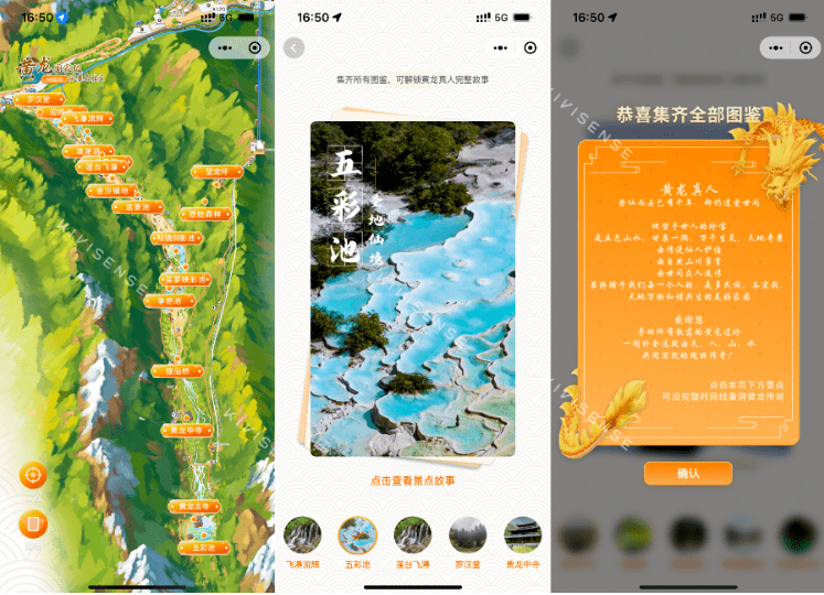 点击具体景点即可开启AR互动打卡:观黄龙古寺雕梁画栋、在十里金沙间感受神龙降世的视觉震撼……沉浸式感受圣地仙境的独特魅力。