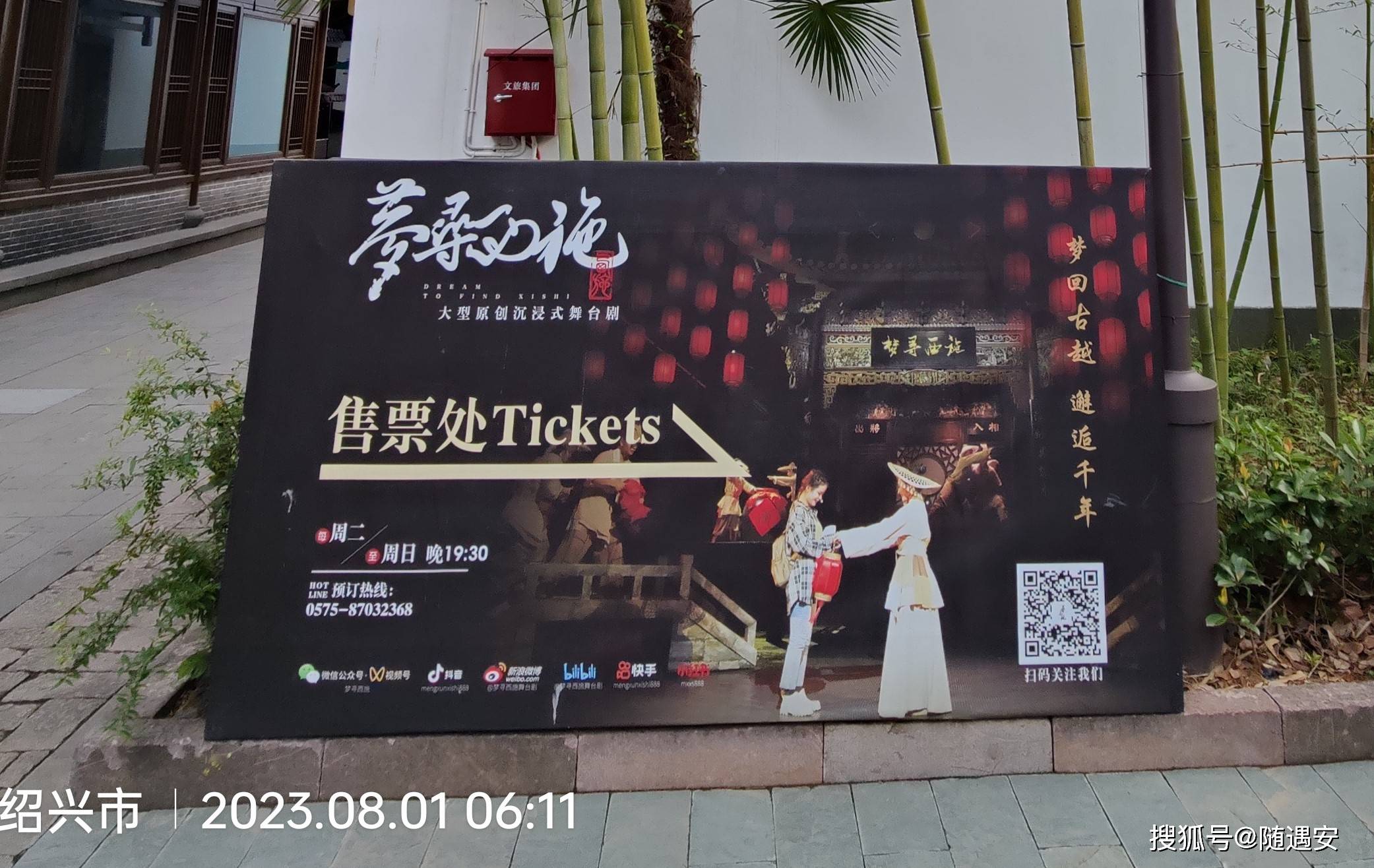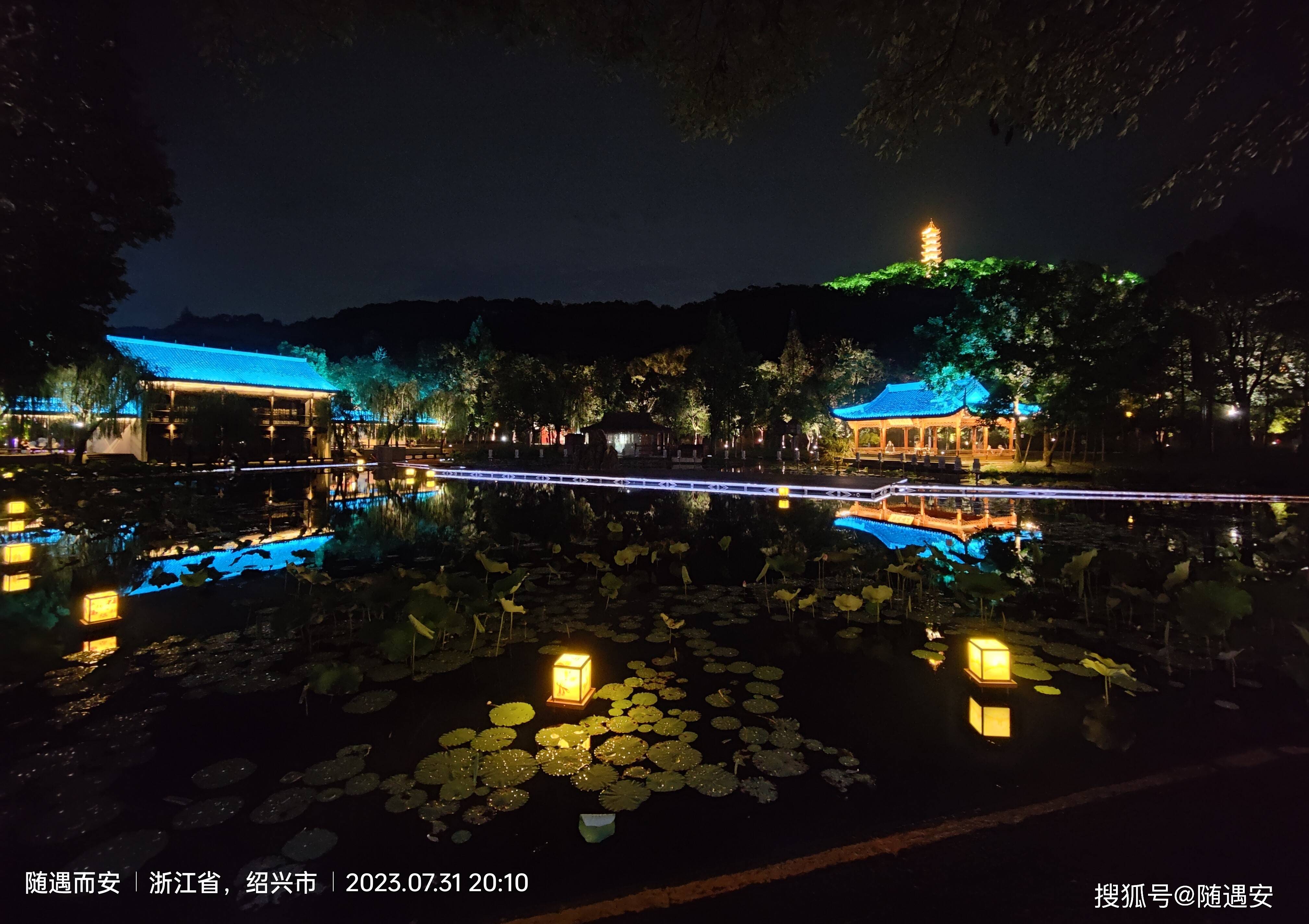 浣纱江边有人行步道,相邻南北向有条古越街,石街两旁是各式商铺,也是游客夜生活聚集的地方。