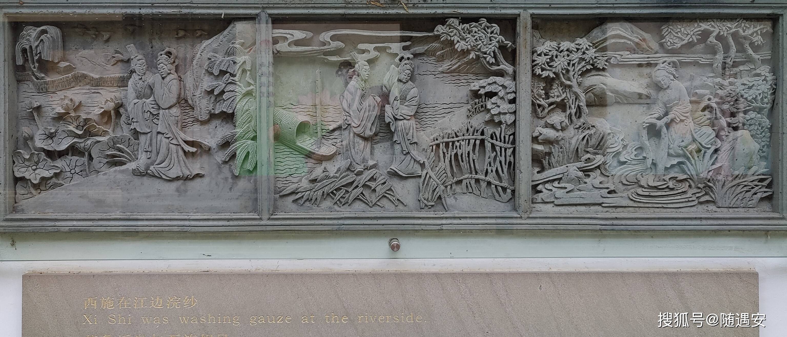 相邻郑旦路西侧是郑氏宗祠。《梦寻西施》大型原创舞台剧在内演出。院外有一长排《西施传说》的砖雕,六块十八格砖雕故事倒是颇有为精致,值得一看。