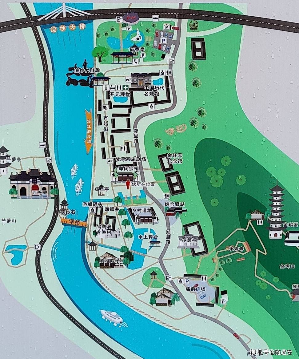 2023年7月31日至8月2日有幸与朋友们去浙江诸暨,住的酒店诸暨同方豪生大酒店竟然与西施故里景区相邻。从酒店后门出来,便是西施滩,北行即进入景区。我竟然有幸三天四次前往那儿,算是细细端详品味了这个并不大的景区,穿越到距今二千五百多年前春秋末期那个战火纷飞的年代。