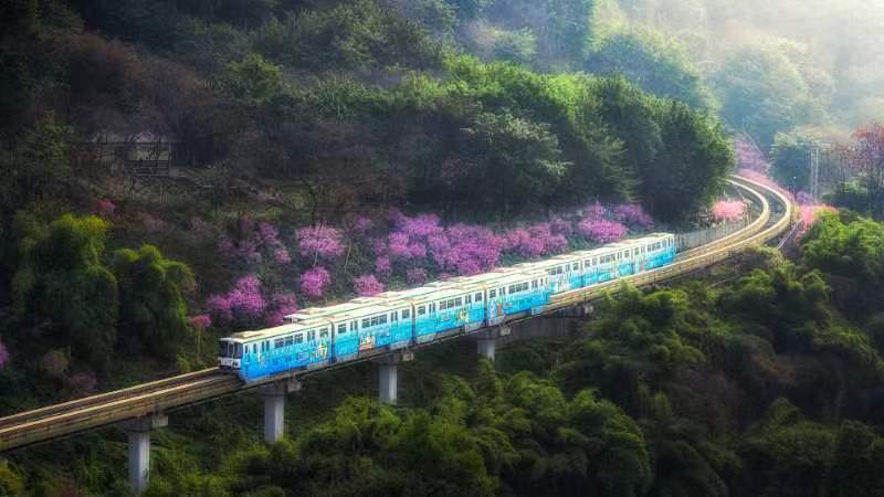 高耸楼宇与青翠苍山相映,金童路姹紫嫣红绵延十余里,点缀其中,让匆匆过客以及游客不吝惜脚步,将美不胜收的春景尽收眼底;园博园、植物园、动物园百花开罢,民众及游客尽可随意游赏,赏花观景,感受浓烈的春天气息;佛图关、李子坝、重庆图书馆、红岩村、彩云湖,处处皆重庆,处处满春色,各处花海将整座重庆城包裹其中,尽显内陆山水之城的别样魅力。
