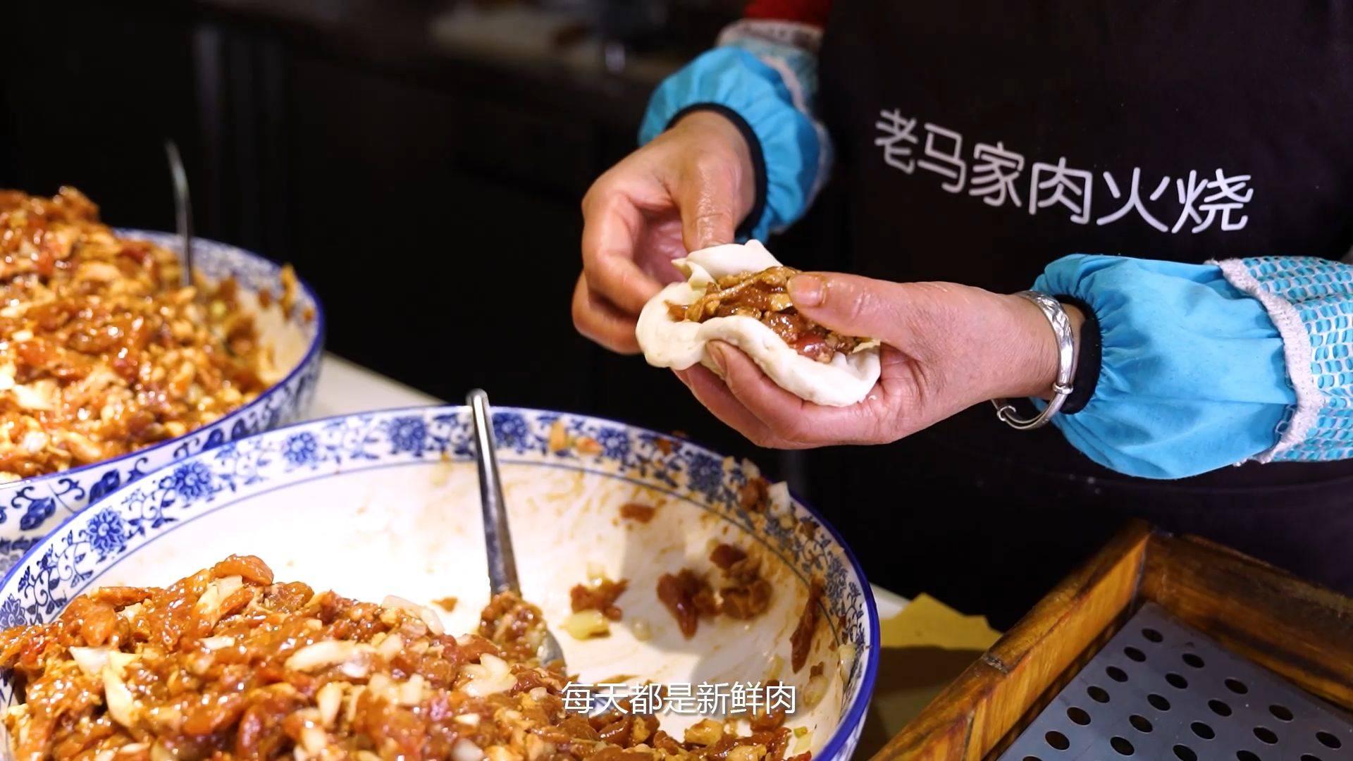 老马家肉火烧老板马亮表示:(我们店)干了二十多年了,一直做肉火烧,牛肉火烧、猪肉火烧,每天都是新鲜肉,保证大家都吃到新鲜的放心肉。