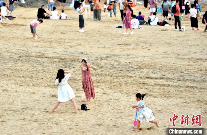 图为游客在厦门厦大白城海滩游玩。吕明 摄