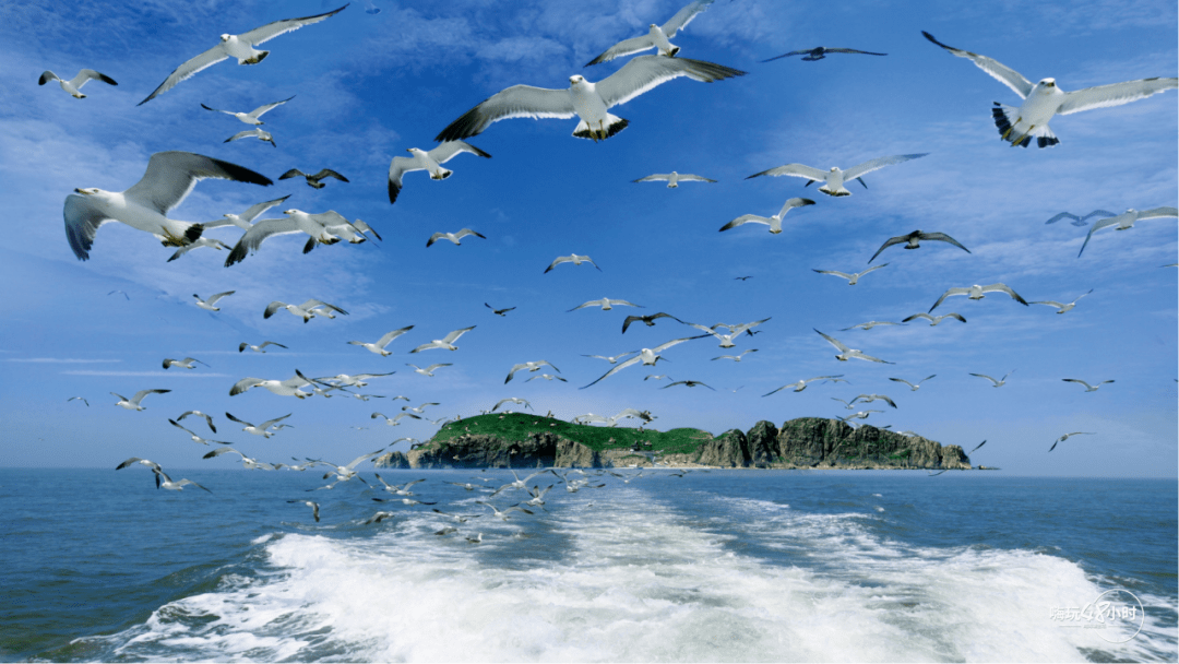 登船环岛,鸥鹭齐飞,翩翩飞舞的黑尾鸥与海浪相映成趣,成就一幅绝美的海岛风光。