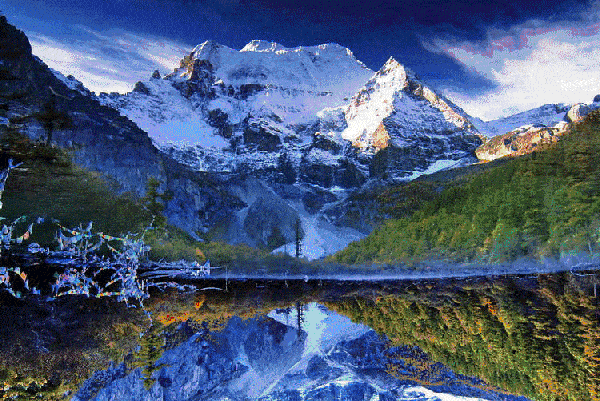 雪山、草甸、森林、湖泊